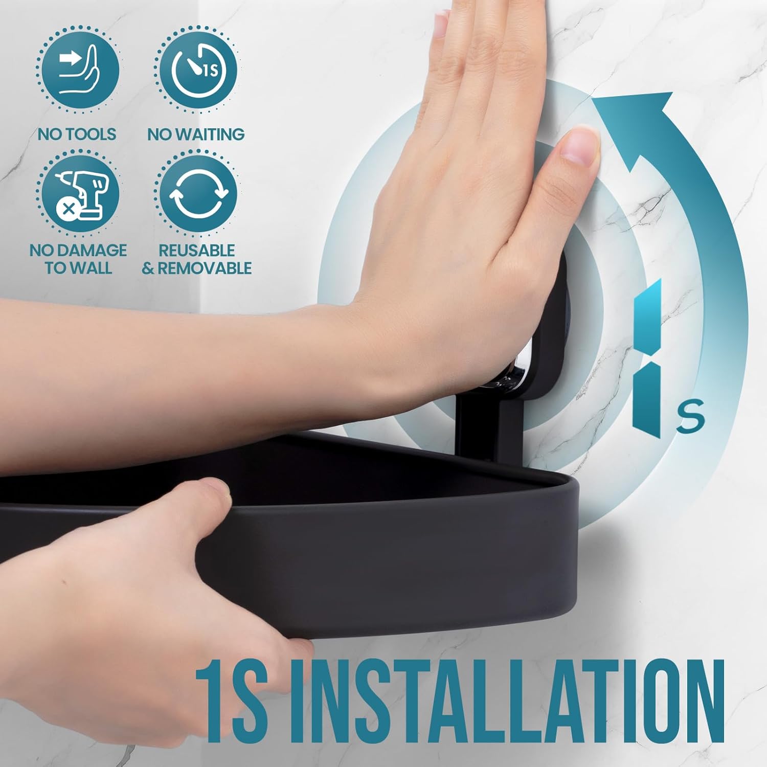 - EASY INSTALLATIO : Just push the adhesive pad down hard for 5 seconds, then seal the edges for extra suction. Hit the middle button to hold the vacuum. Place the second pad and do the same steps to mount it. No screws or drilling required