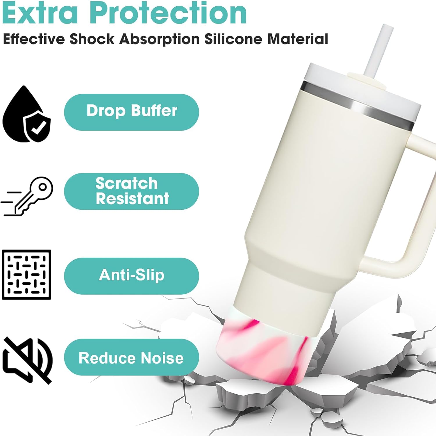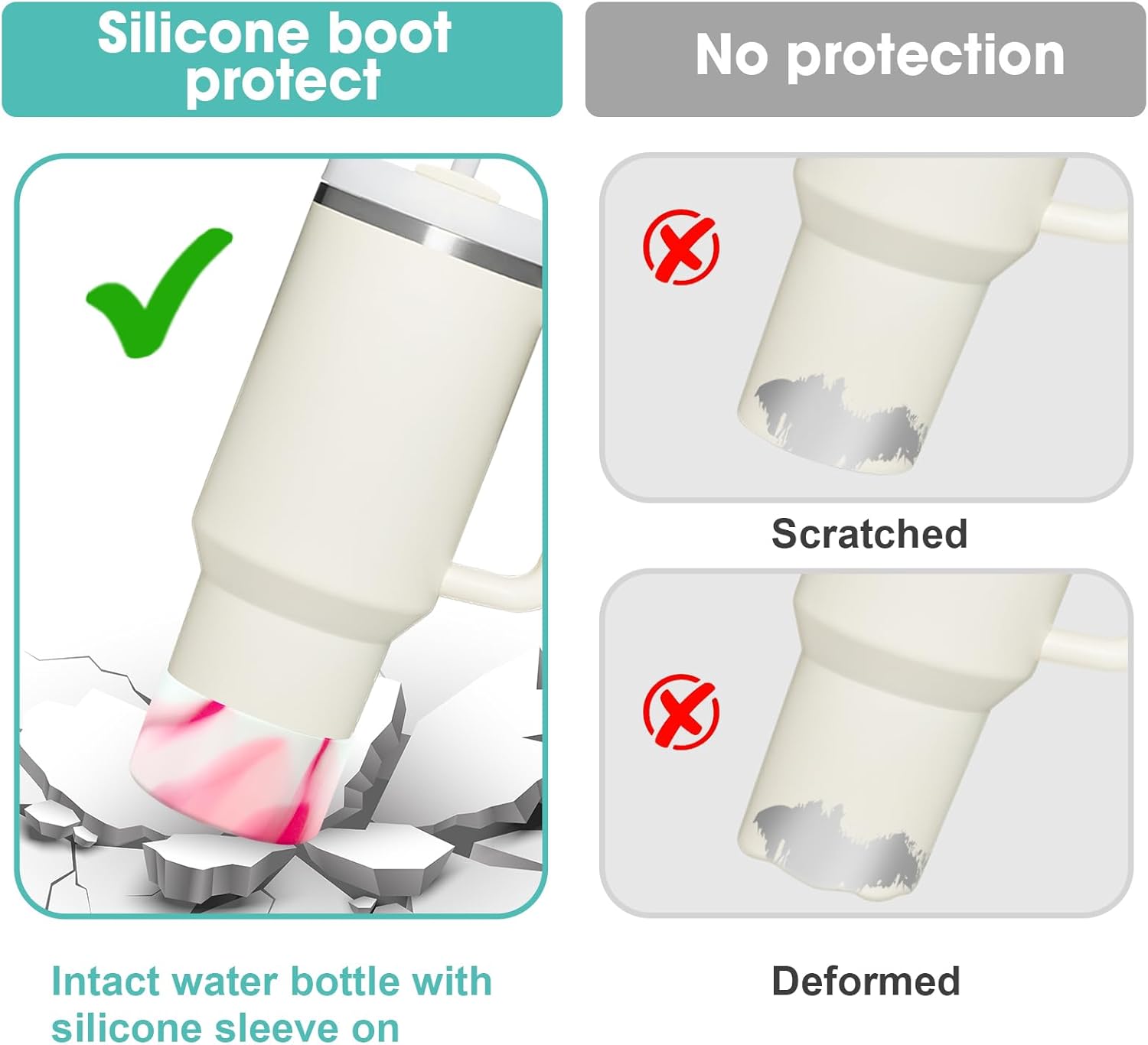 • 【Excellent Protection】Still worried about broken, scratched bottoms of your favorite stainless steel water bottles? Or embarrassed by the clinking sound the bottle makes on the table? This silicone sleeve for Stanley can effectively protect the bottom of the bottle from depression, scratch, skid resistance and noise.
