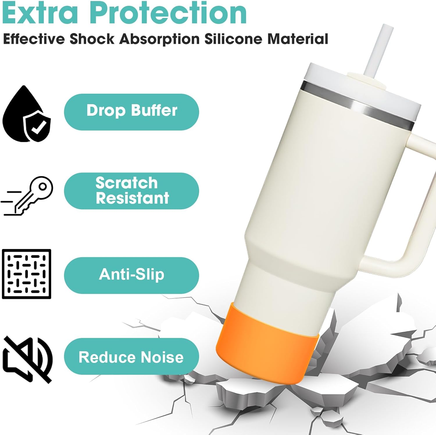 - 【Excellent Protection】Still worried about broken, scratched bottoms of your favorite stainless steel water bottles? Or embarrassed by the clinking sound the bottle makes on the table? This silicone sleeve for Stanley can effectively protect the bottom of the bottle from depression, scratch, skid resistance and noise.