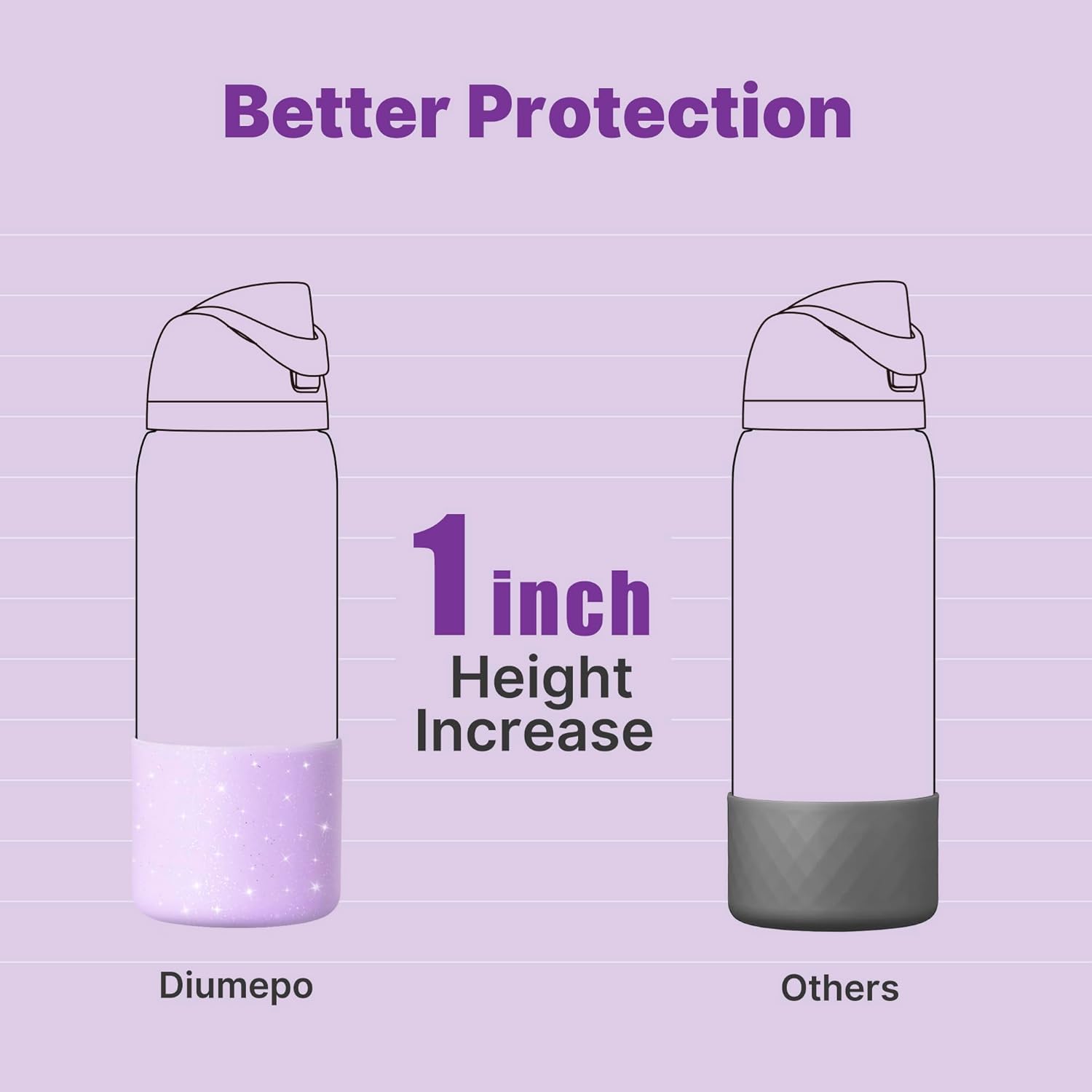 Silicone Water Bottle Boot for Owala 32 oz, Anti-Slip Protective Sleeve for Twist, FreeSip & Flip Stainless Steel Bottles, Bottom Base (Glitter Purple)