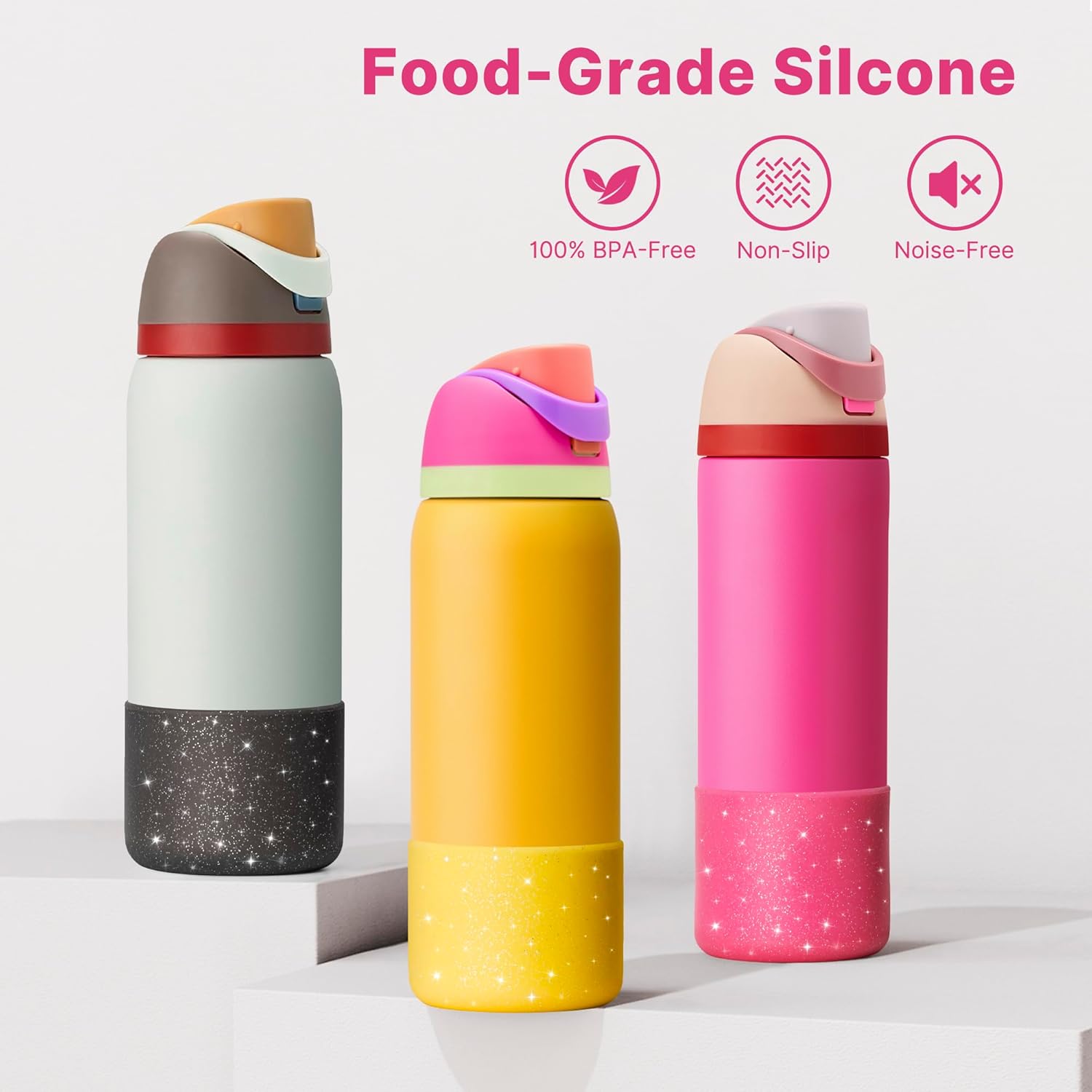- PERSONALIZED APPEARANCE: We offer different color choices, you can choose the same or different color as the water bottle, mix and match custom color appearance, add fashion elements, become a unique water bottle.