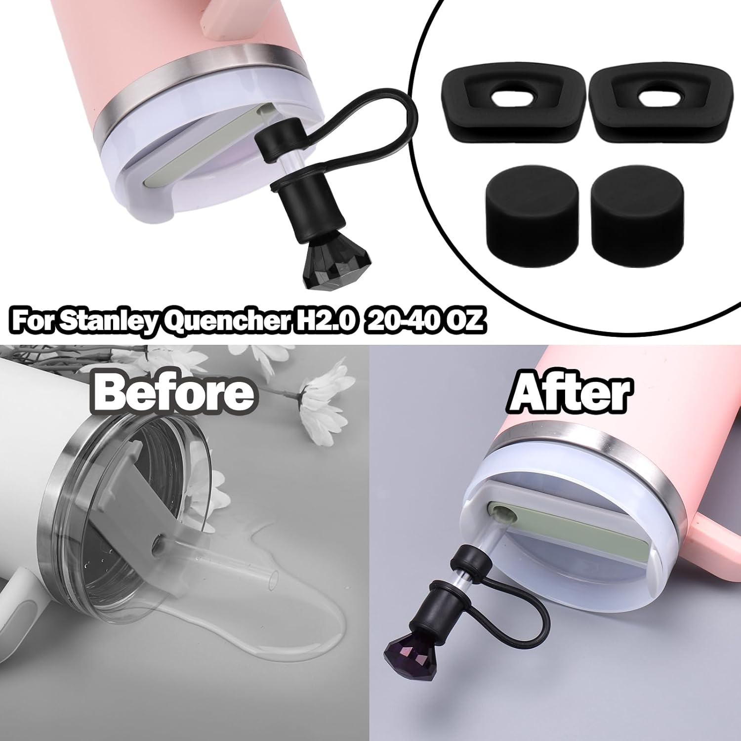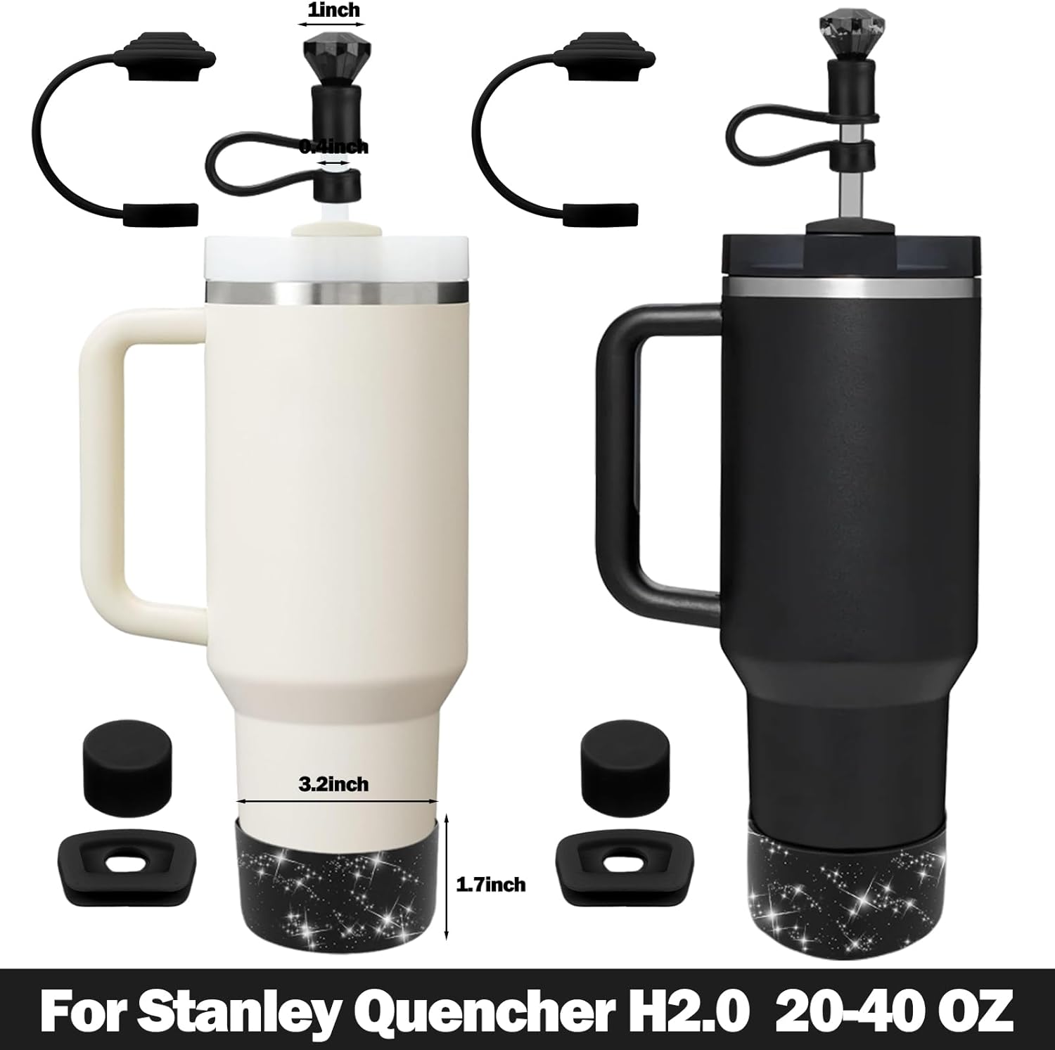 - [WIDE COMPATIBILITY]: Our Spill Stopper Set accessories fit Stanley Quencher 1.0/ H2.0, 40 oz/ 30 oz, Straw Lid fits 9-11 mm diameter straws perfectly, Silicone Sleeve is compatible with cup base diameter 2.75-2.95", which can meet and match with many brands of non-slip straw cups on the market. For example for stanley cup, for Yeti/Owala/Meoky/Hydroflask cup straws