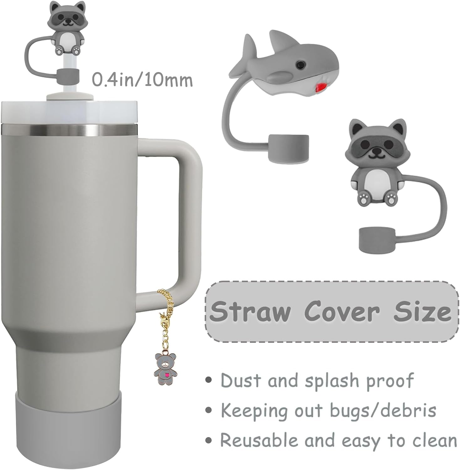 Stanley Cup Accessories Set,Including 2 Pcs 0.4in Straw Cover, 1 Silicone Spill-Proof Stopper, 1 Cute Handle Charm, 1 Silicone Boot Fits Stanley 40&30 Oz Tumbler (Grey)