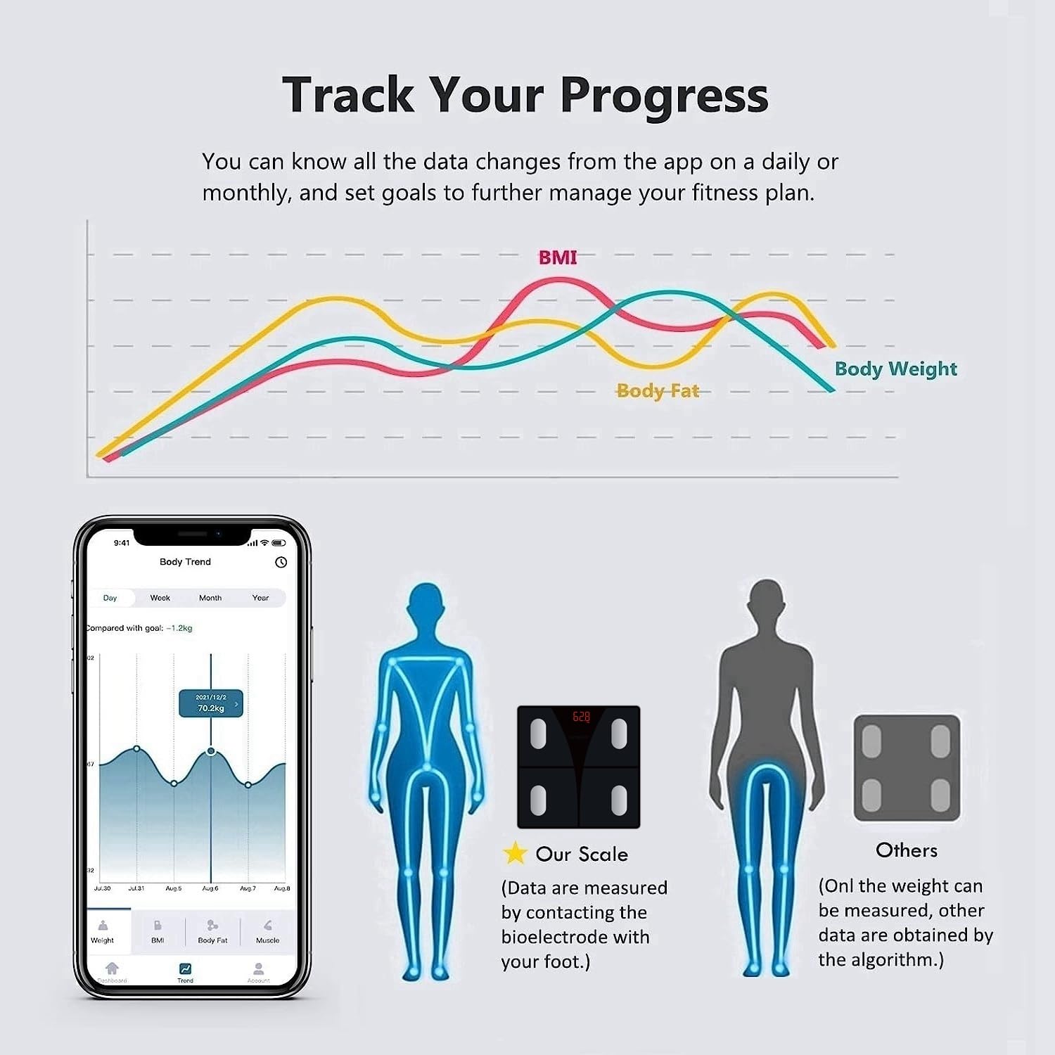 - 【User-friendly App with Baby Mode】MovingLife APP allows you to set a goal, monitor your fitness trends with an automatic chart, track your historical data for comparison. Easily deduct yout weight from you while you hold your baby on hand for getting the baby's weight.