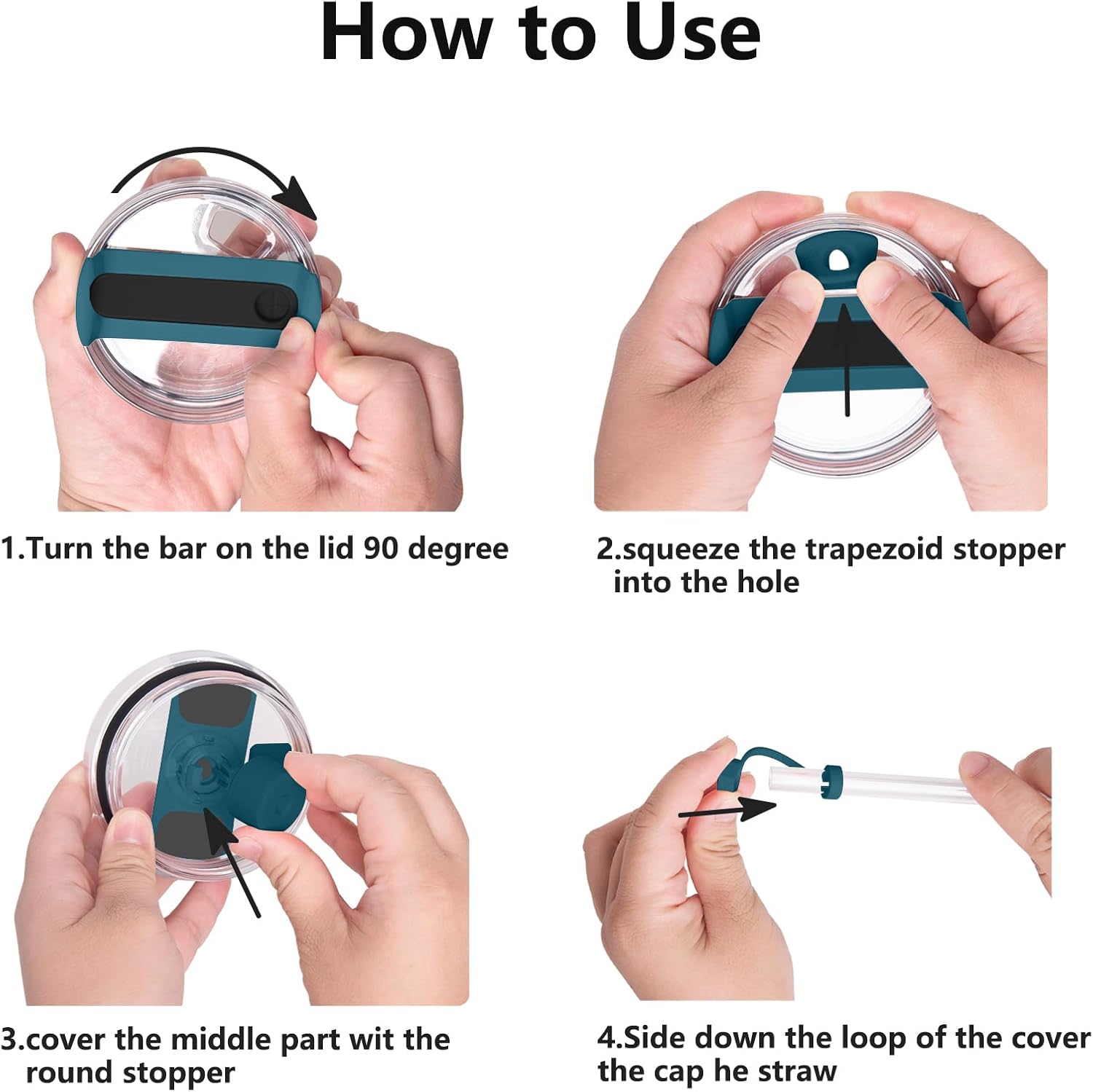 - 2 sets blue spruce leak proof stopper, each set contains 1* straw cover, 1* round lid leak stopper, 1* square spill stopper. Made of food-grade odorless silicone, compatible with Stanley Quencher H2.0 FlowState Tumbler 30oz & 40oz