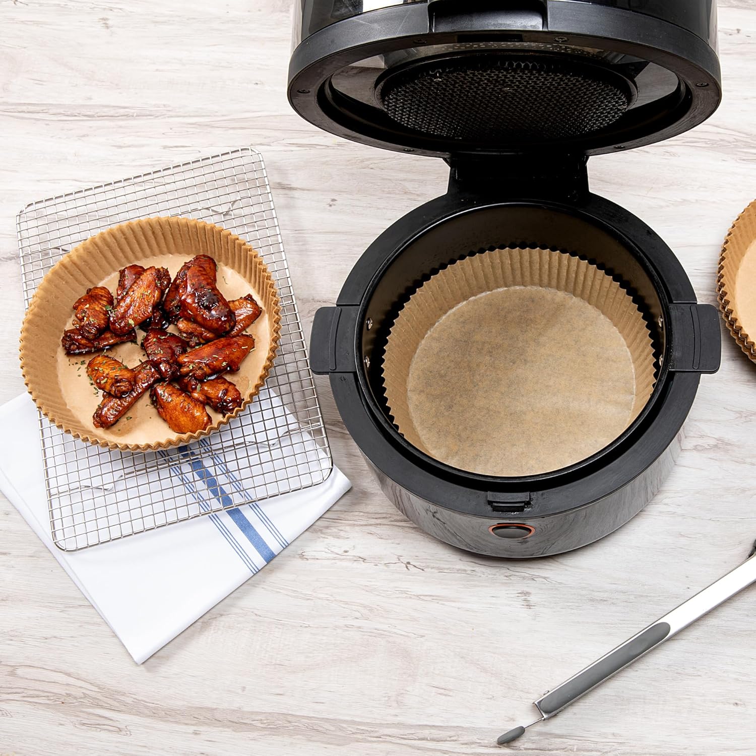 • INCLUDES 100 AIR FRYER LINERS: These disposable parchment air fryer liners measure 8.1 inches in diameter by 1.8 inches in height. You will receive 100 disposable paper liners.