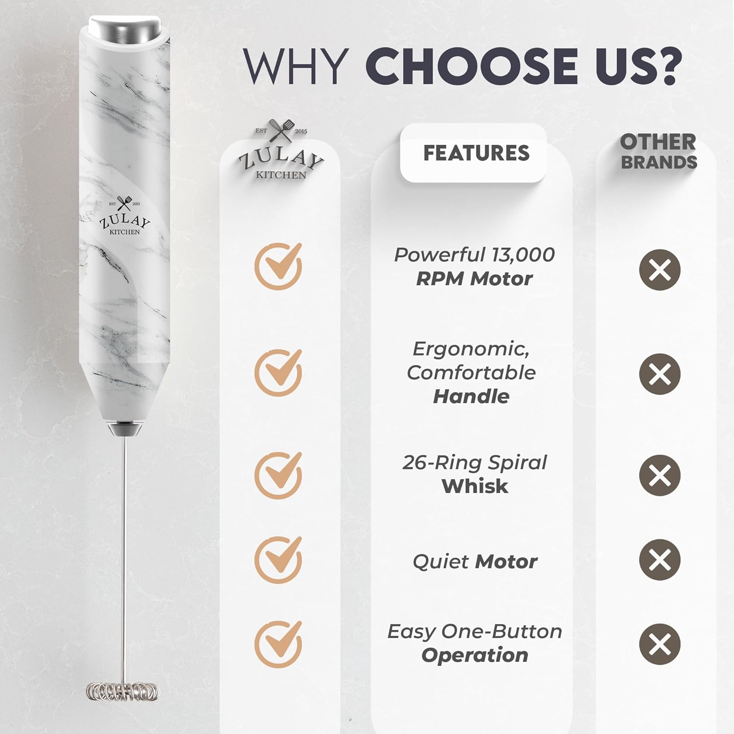 Zulay Kitchen Milk Frother Handheld with 2 Duracell AA Batteries – Electric Drink Mixer for Coffee, Lattes, Cappuccinos, Matcha & Hot Chocolate – Portable Foam Maker & Coffee Bar Accessory