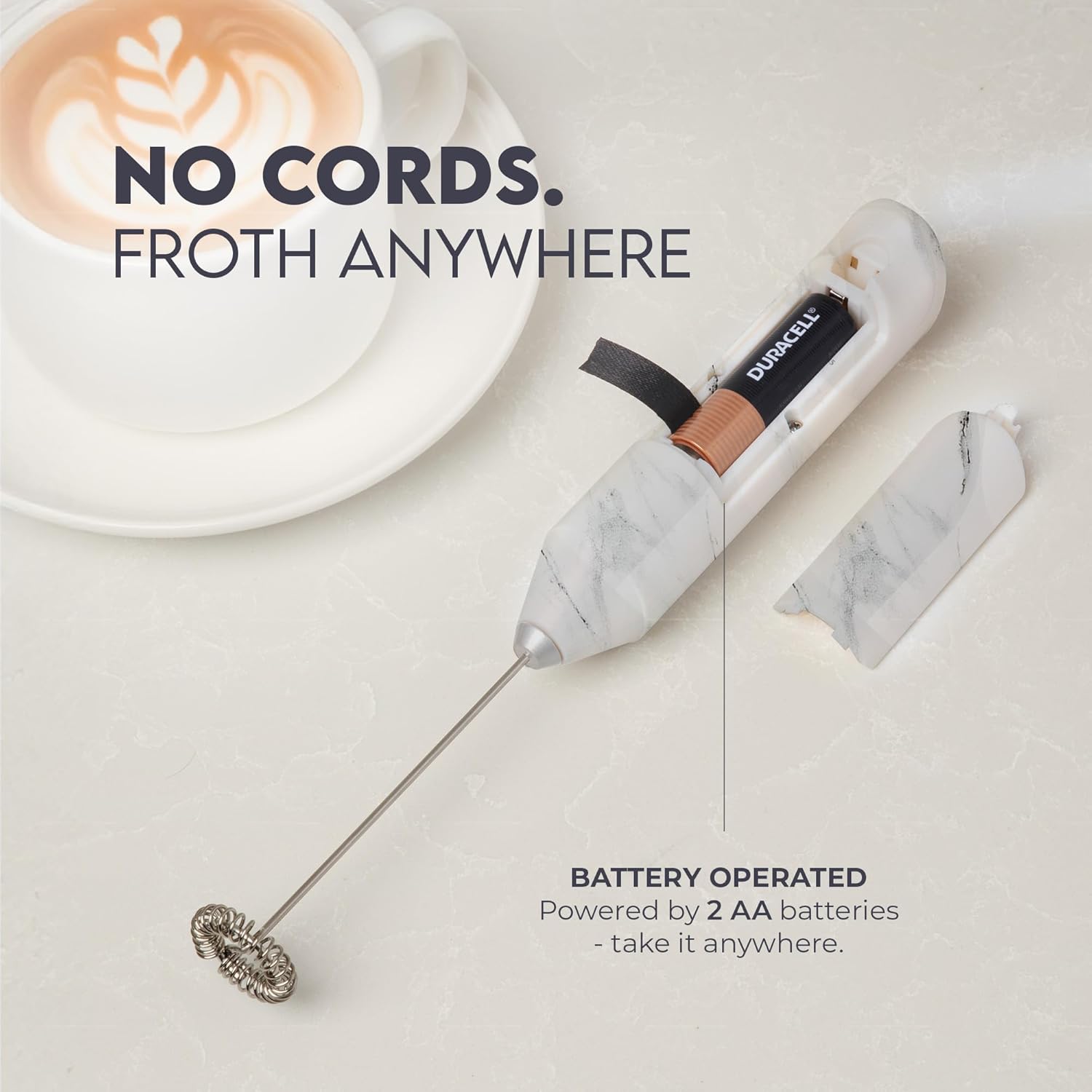 - Ready to Use: Includes 2 Duracell AA batteries so you can froth right out of the box.