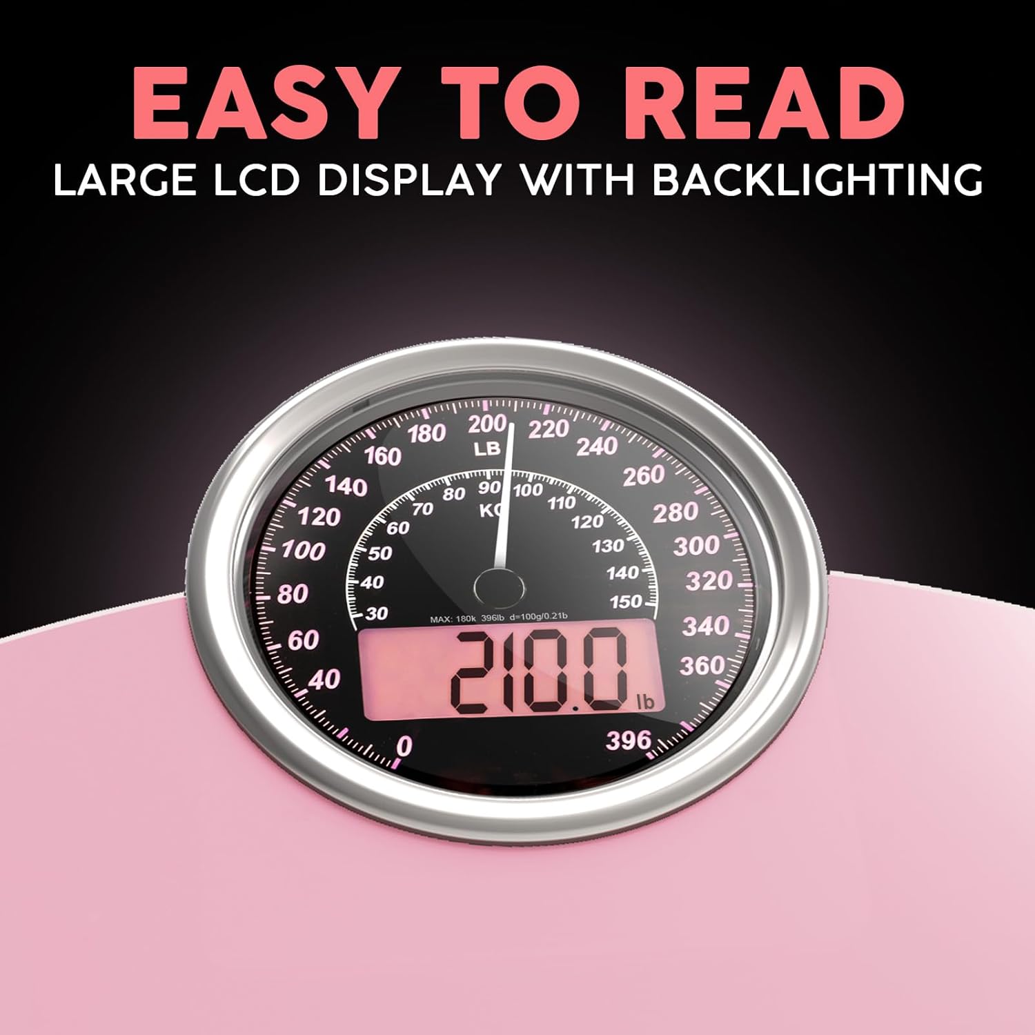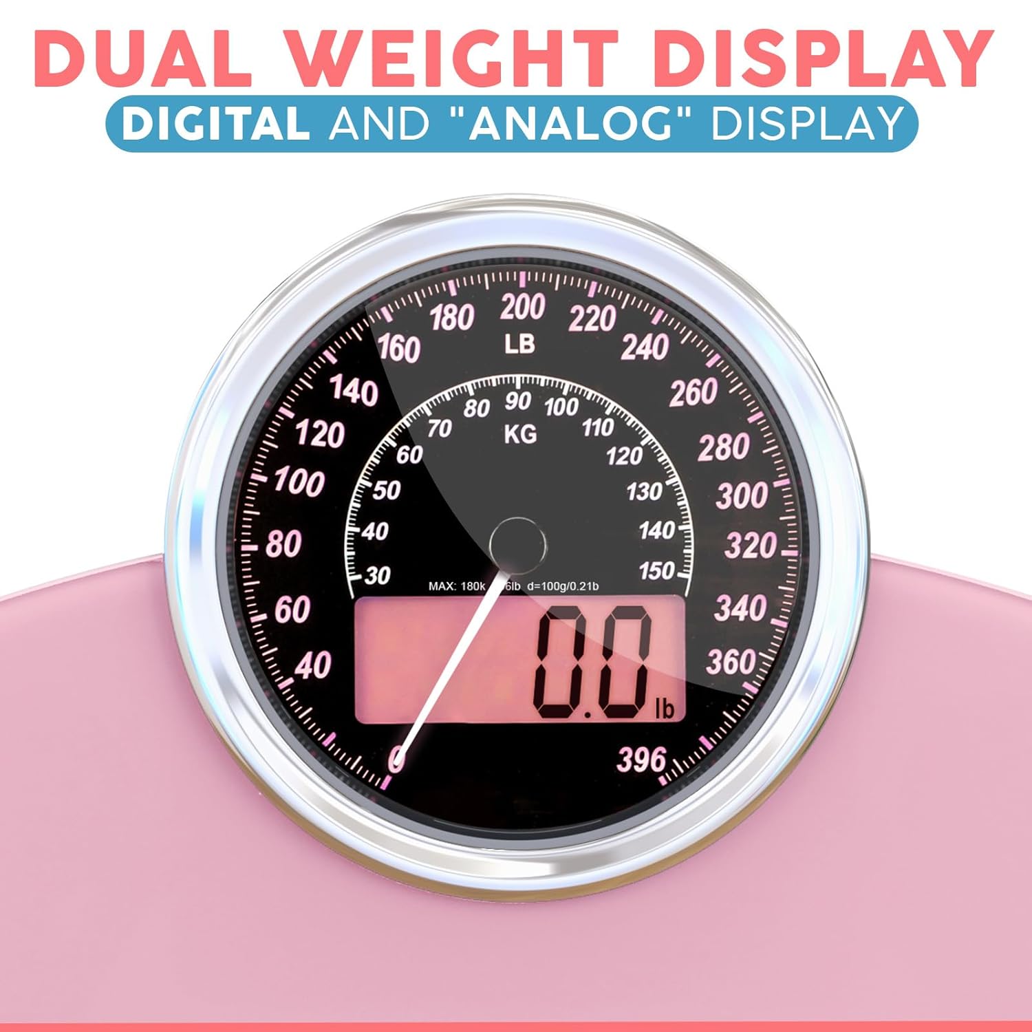 Adamson Hybrid 2-in-1 Analog & Digital Weighing Scale for Body Weight up to 400lbs - Thick Tempered Glass - Extra Large Display - Easy to Read Digital Bathroom Scale - New - Pink