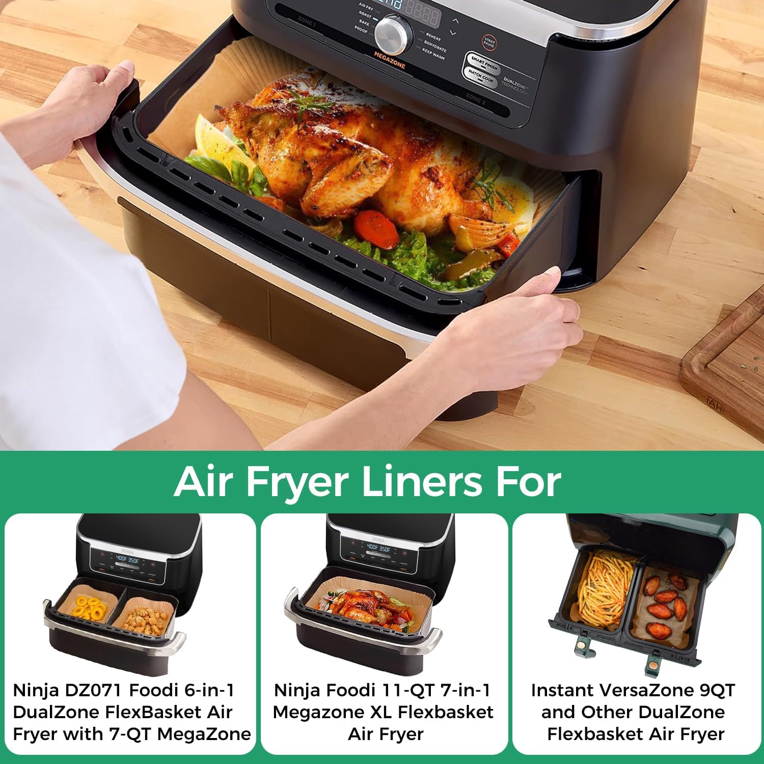 - Prefectly Compatible With: The air fryer liners set fit for Ninja DZ071 7-QT/Ninja AD600CO 11-QT/Instant VersaZone 9-QT/Topzee 11-QT FlexBasket Air Fryer. Small liners for 3.5 to 5.5 qt dual zones divider baskets, Large paper liners fit for 11 qt large megazone.