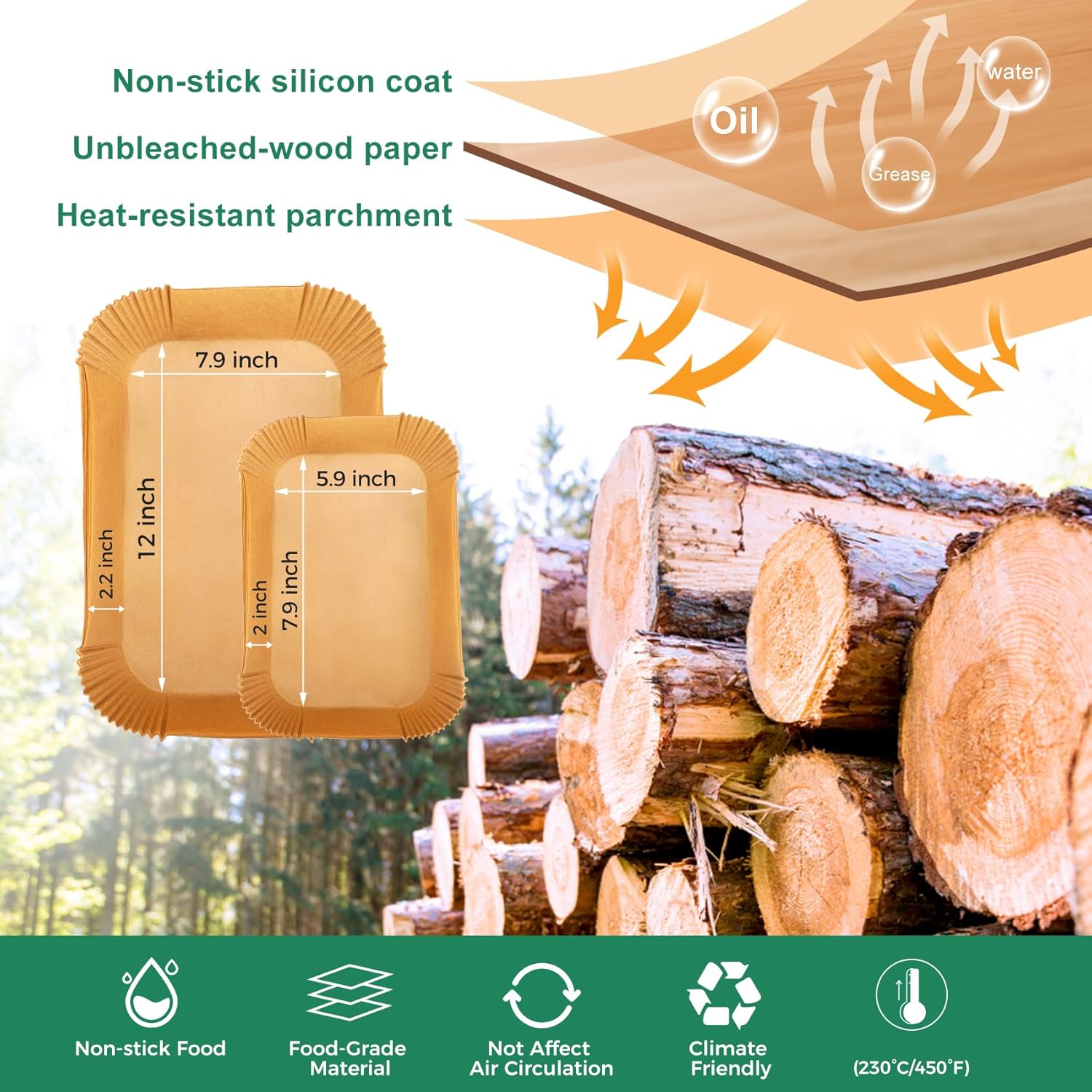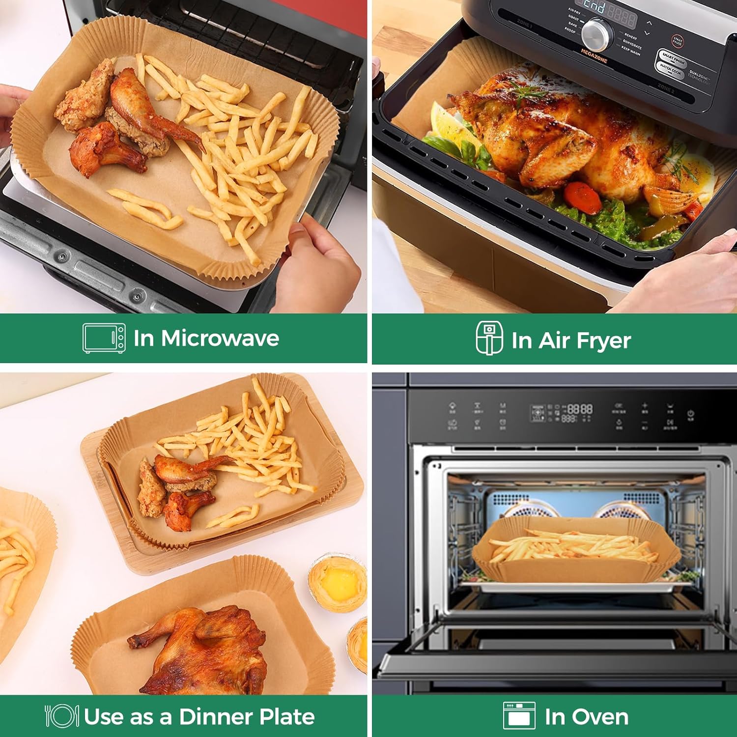 - Keep Your Air Fryer Clean: These rectangle parchment paper with no holes and higher edge designed do a great job of absorbing grease splatters, effectively keep food residue away from sides and bottom of the air fryer and make it as clean as unused. Just pull the food out of your air fryer basket with no cleanup mess.