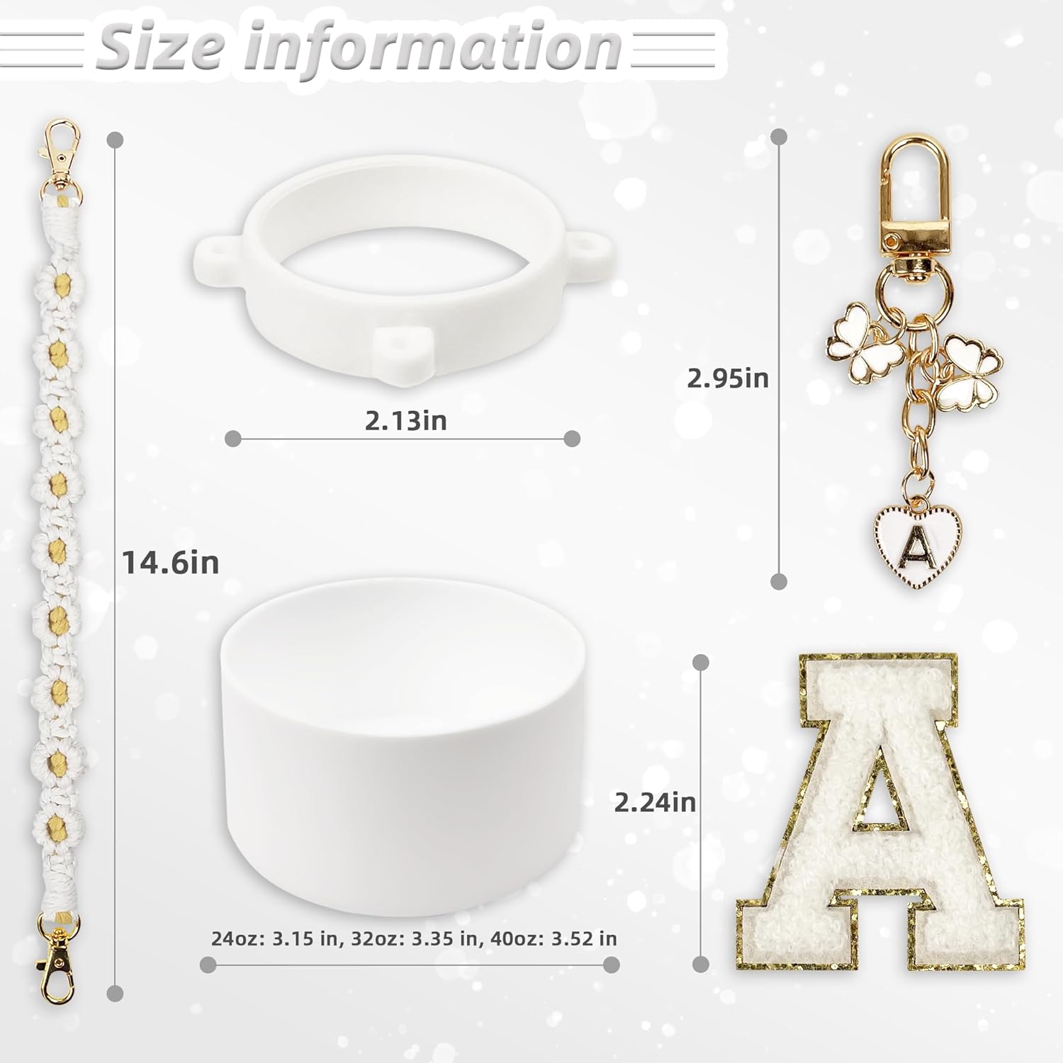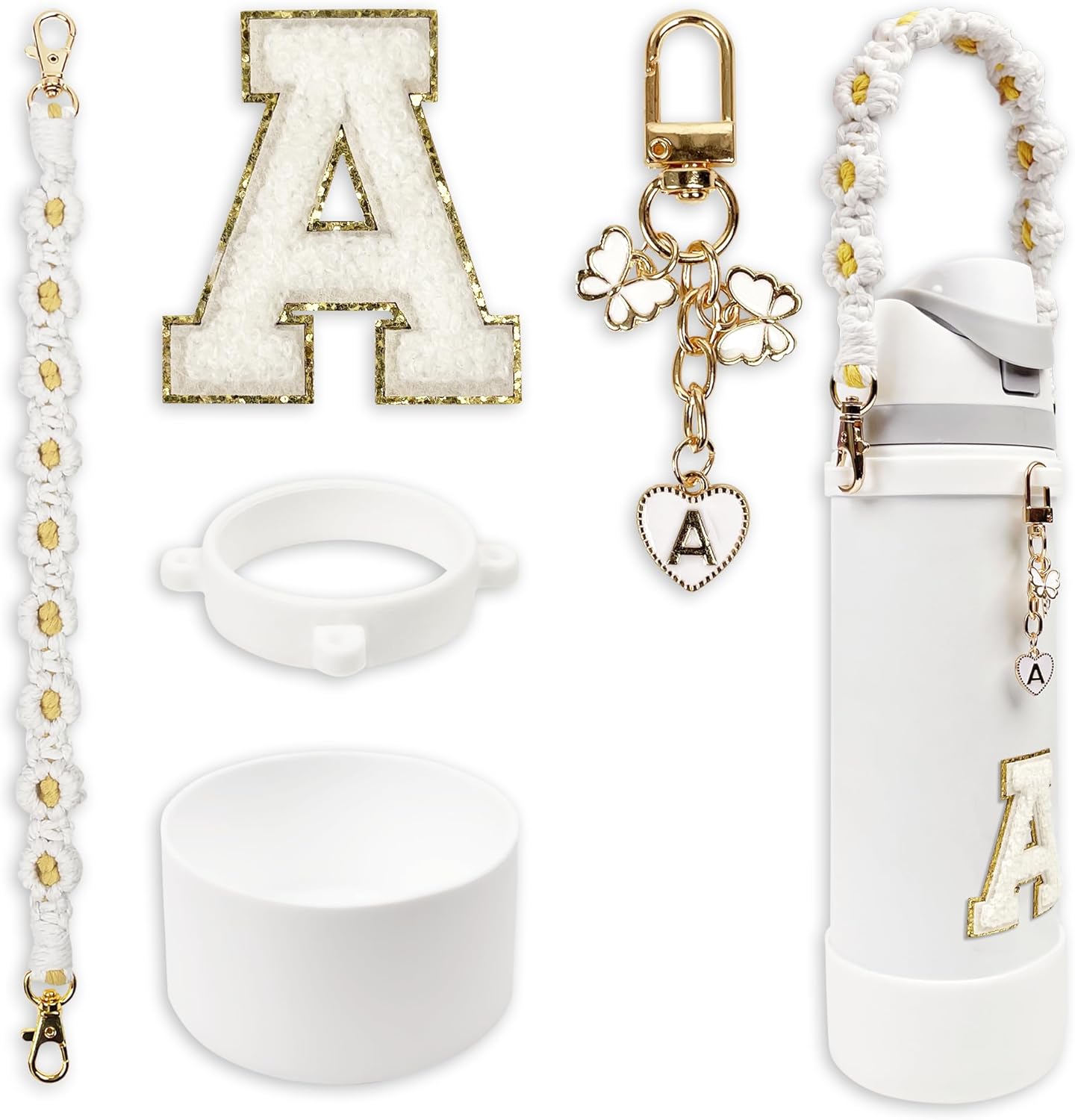 • Compatibility: This set includes a perfectly fitting silicone boot for Owala FreeSip 24 oz and Owala Tumbler 24 oz, along with a handle strap, letter stickers, and a letter keychain