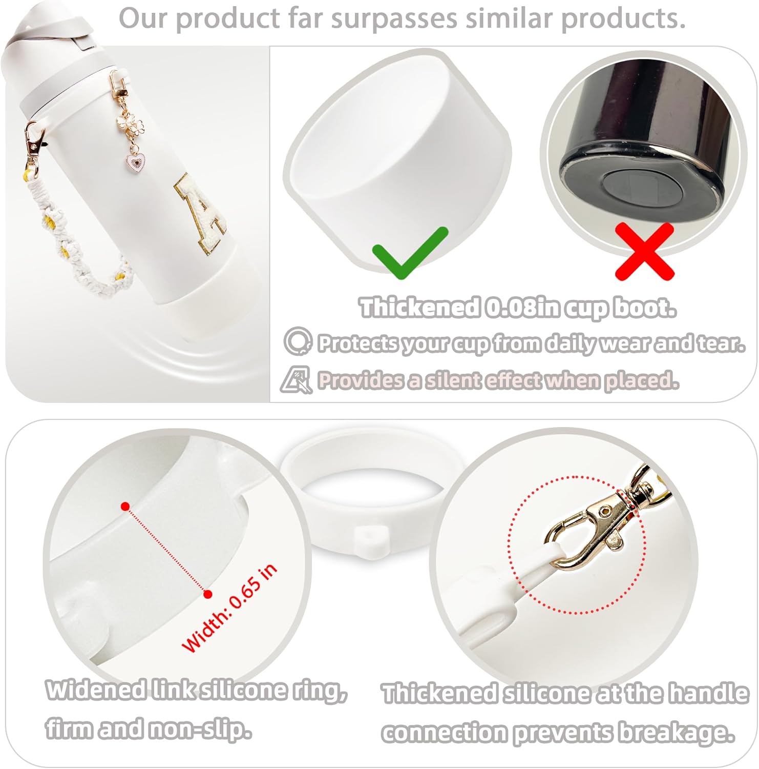 • Compatible with Other Brands: If you have water bottles from other brands like Stanley, and the bottom diameter is 1.2"-2" larger than our boot, you can still use our set as a great addition. Our boot features high elasticity to fit a range of sizes.