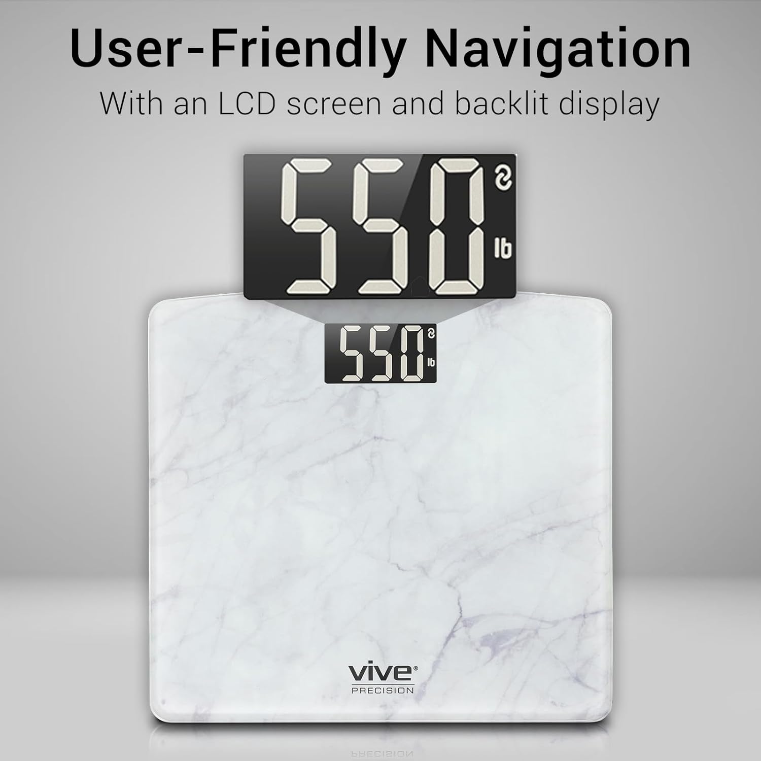 Vive Smart Body Weight Scale (500lbs Capacity) - Heavy Duty Bariatric Digital Scale for BMI - Plus Size, Large Display - Bathroom Device for Health Extra Wide Base & Smartphone Connectivity
