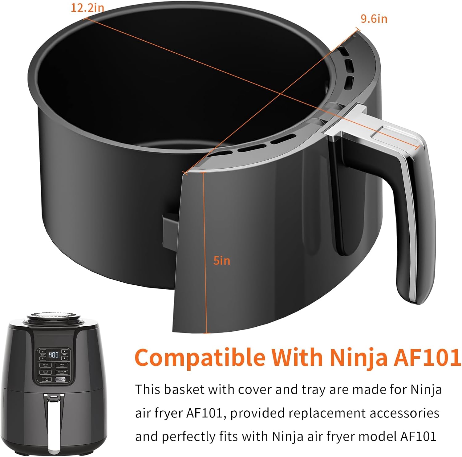 - Compatible for Ninja: This basket with cover and tray are compatible for Ninja air fryer AF101, provided replacement accessories and perfectly fits for Ninja air fryer model AF101