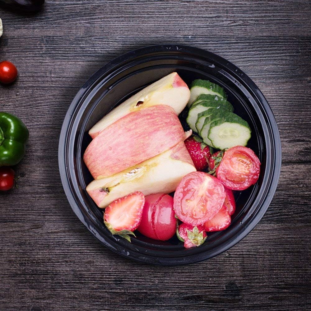 Glotoch Express 16oz Black Plastic Round Meal Prep Containers, 150 Pack Reusable Microwave Freezer Dishwasher Safe