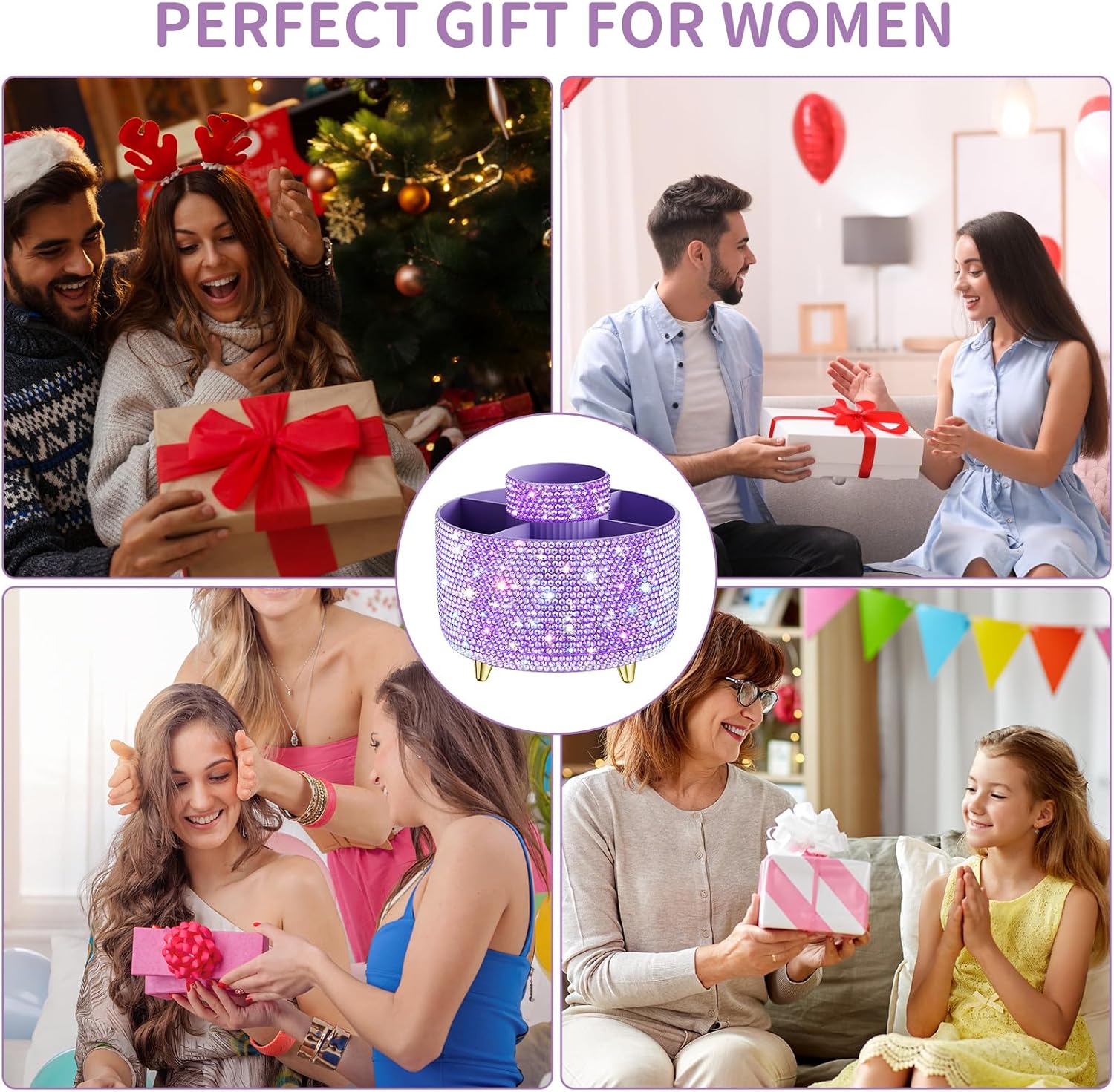 Bling 360° Rotate Makeup Brush Holder Organizer, Makeup Organizers Countertop, Makeup organization and Skincare Storage for Vanity, Gift for Women Girls (Bling dz-Purple)