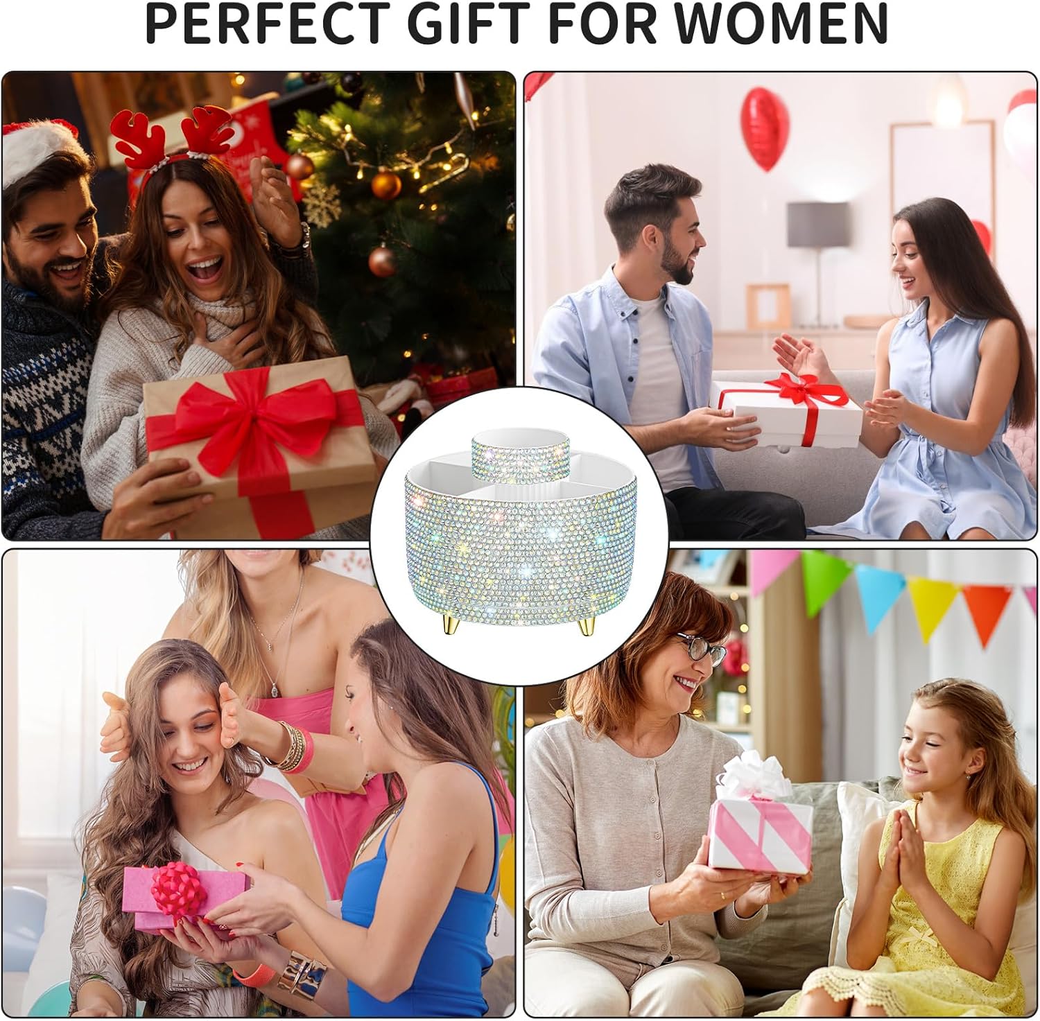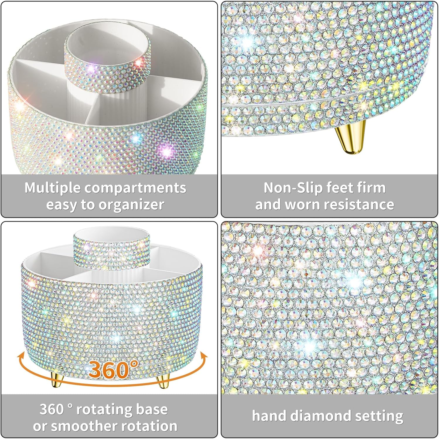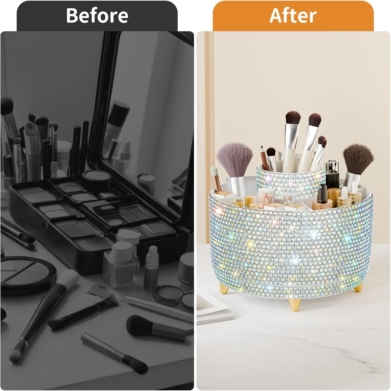 - 【SHINY APPEARANCE】Our makeup organizer is handmade with a fully diamond wrapped surface, designed to bring a more attractive and sparkling appearance. Which must be the best charming ornament for any countertop, vanity, or dresser