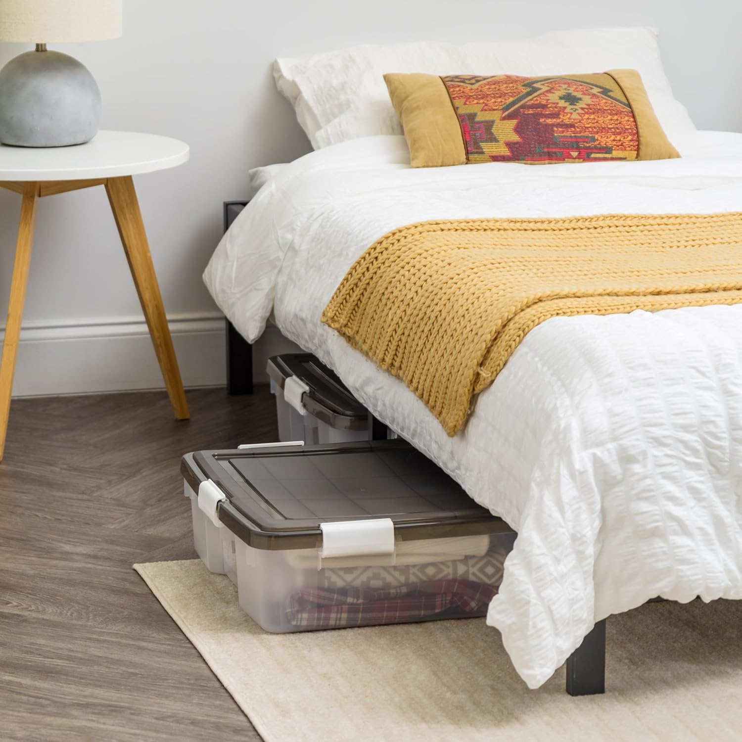 IRIS USA WeatherPro Underbed 47 Qt Storage Bins with Lids, 1 Pack, BPA-Free Plastic Gasket Box with Tight Latch and Seal, Stackable Nestable Underbed Tote Tub - Gray/Clear