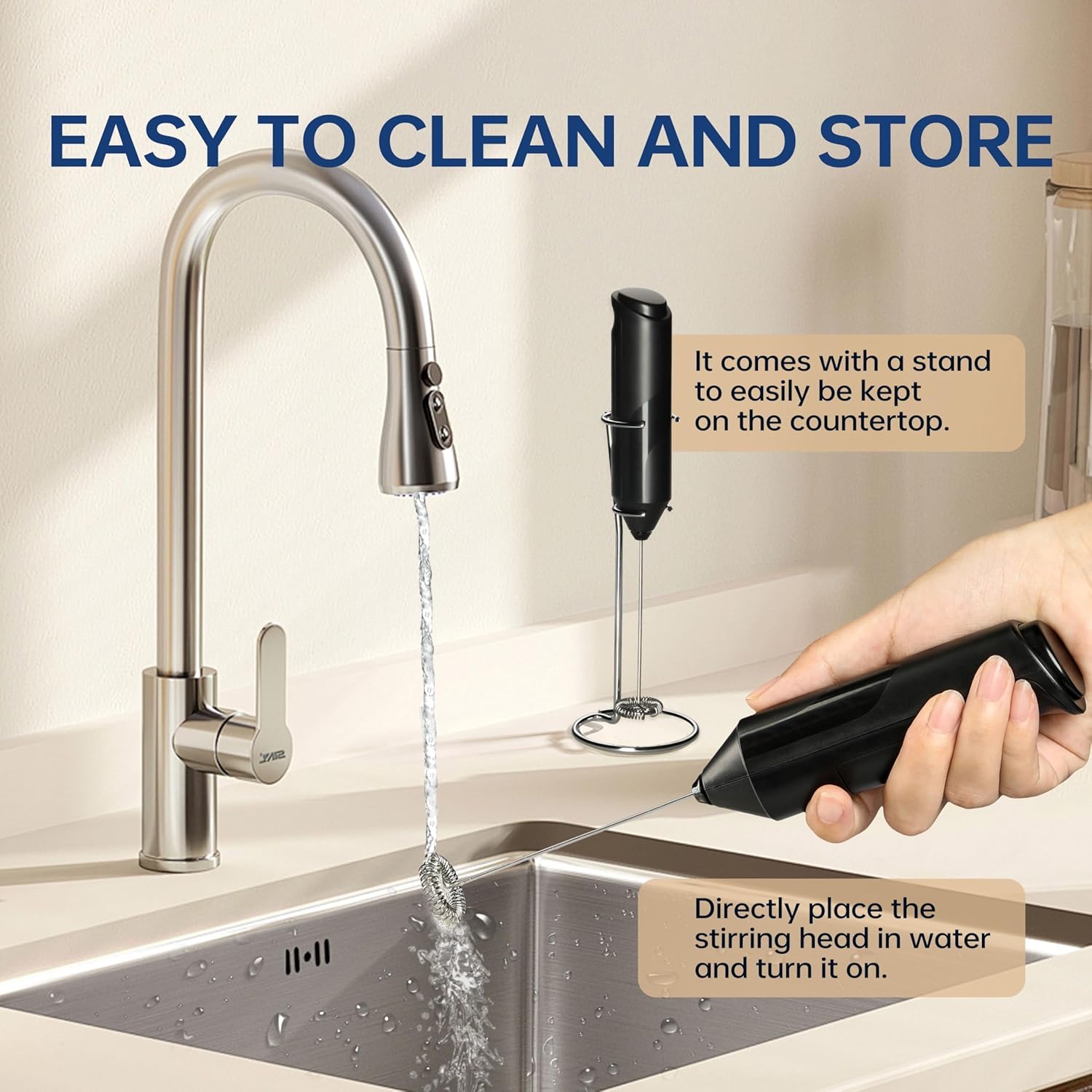 - Stainless steel stand: Each milk frother is equipped with a stainless steel bracket for the base, so you don't have to worry about the bubbler touching the table top. And it's a perfect ornament