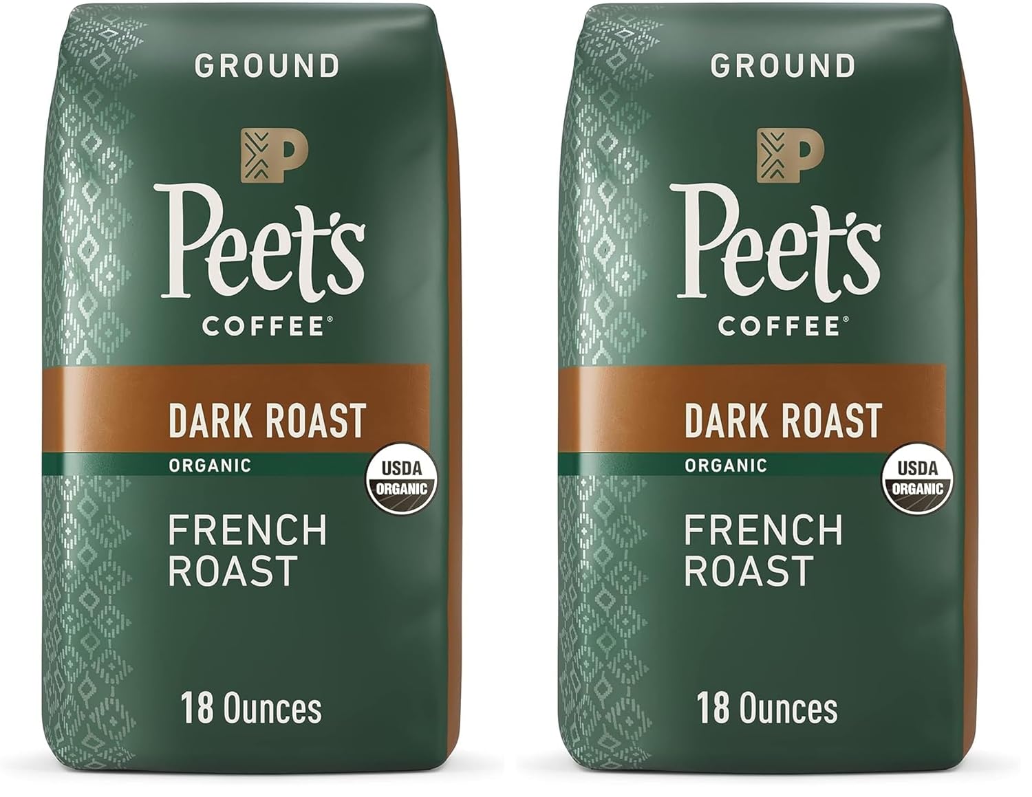 Peet's Coffee Dark Roast Ground Coffee | USDA Organic | French Roast | 36 Ounces | 2 Bags