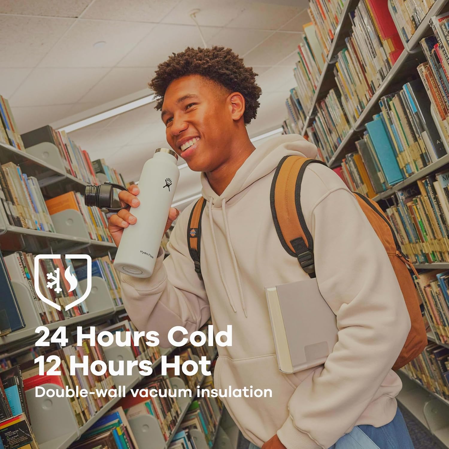 - 24 HOURS COLD. 12 HOURS HOT: The insulated water bottle keeps drinks cold for 24 hours and hot for 12 thanks to double-wall vacuum insulation. TempShield insulation is designed to be lightweight and efficient temperature retention, keeping contents ready to sip.