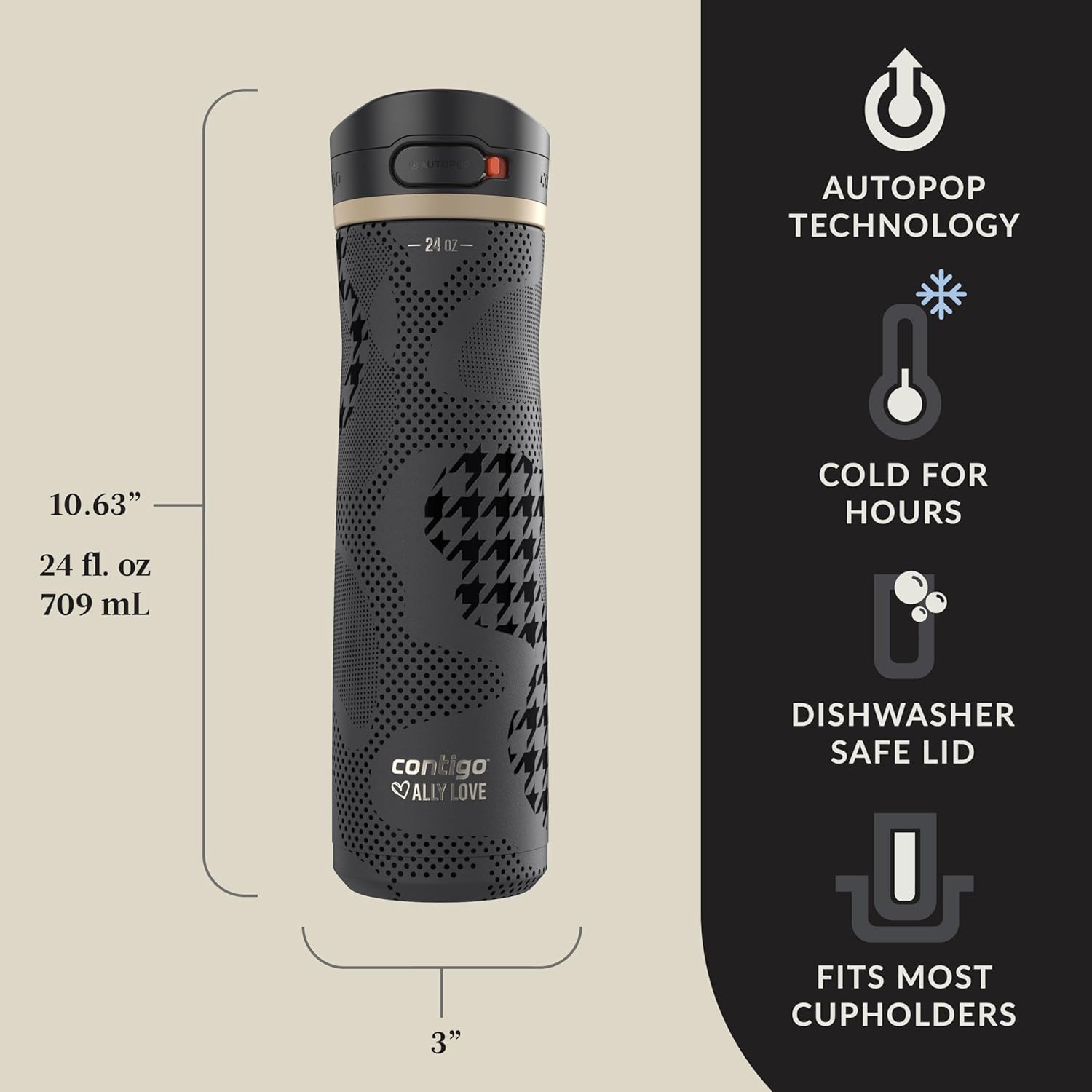 Contigo x Ally Love Jackson Chill 2.0, Stainless Steel, Spill Proof Water Bottle with AutoPop Lid, BPA Free, 24oz, Licorice