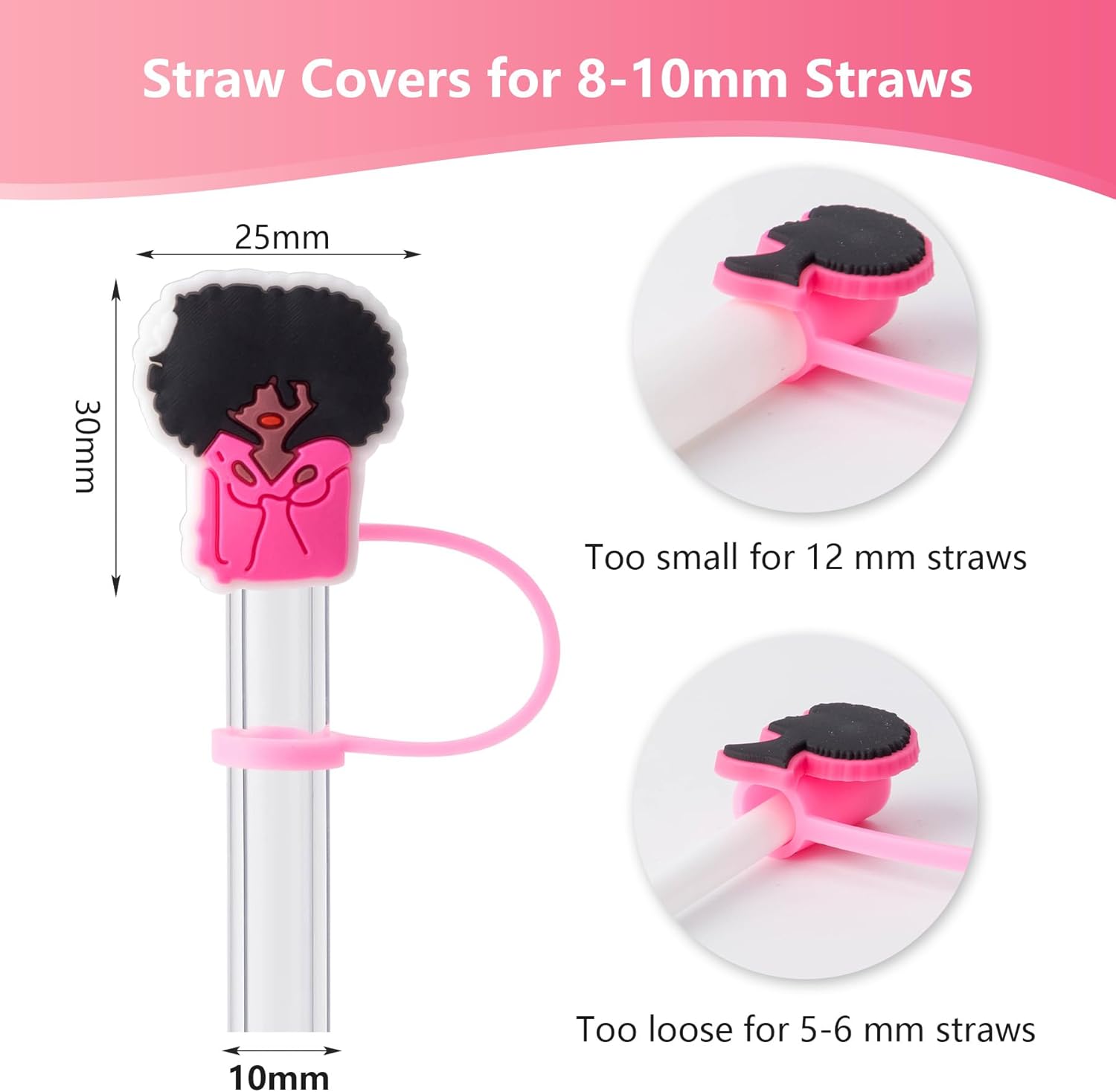 6Pcs Black Girl Straw Cover Cap for Stanley Cup Accessories, 10mm Cute Pink Drinking Straw Topper for 40oz 30oz Stanley Tumbler, Dust-Proof Reusable Straw Tips Gifts for Women