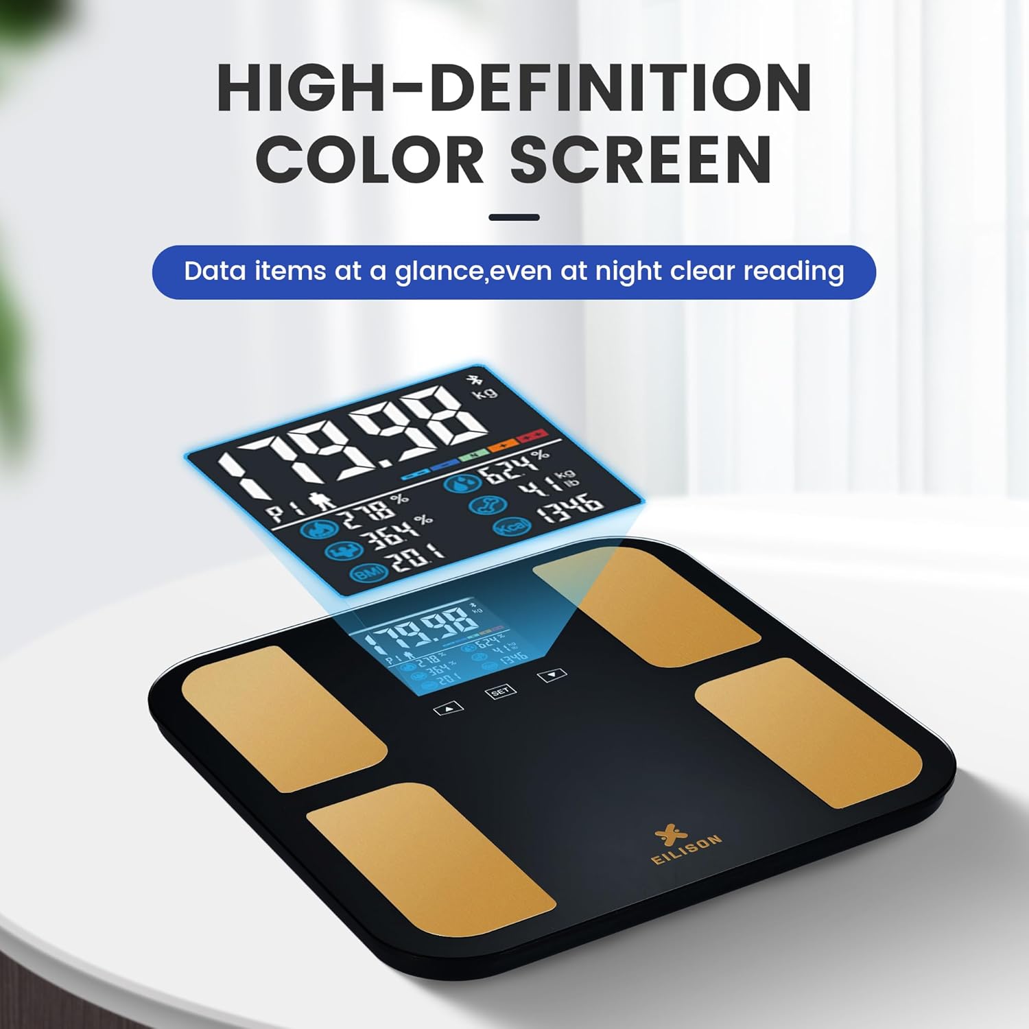 - ๐HIGHLY ACCURATE WEIGHT MEASUREMENT : Eilison bathroom digital weighing scale provides measurement of 2 units- lbs and kgs. With the help of 4 Highly Advance Precision GX Sensors this digital weighing scale measures with accuracy of 0.2lbs/0.1kg.