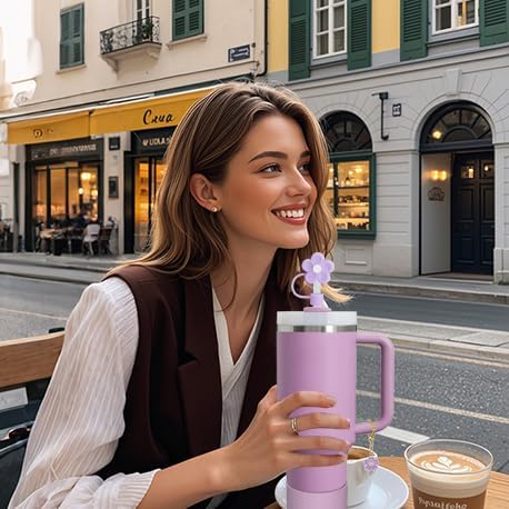 Stanley Cup Accessories Set,Including 2 Pcs 0.4in Straw Cover, 1 Silicone Spill-Proof Stopper Set of 3, 1 Cute Purple Flower Handle Charm, 1 Silicone Boot Fits Stanley 40&30 Oz Tumbler (Lilac)