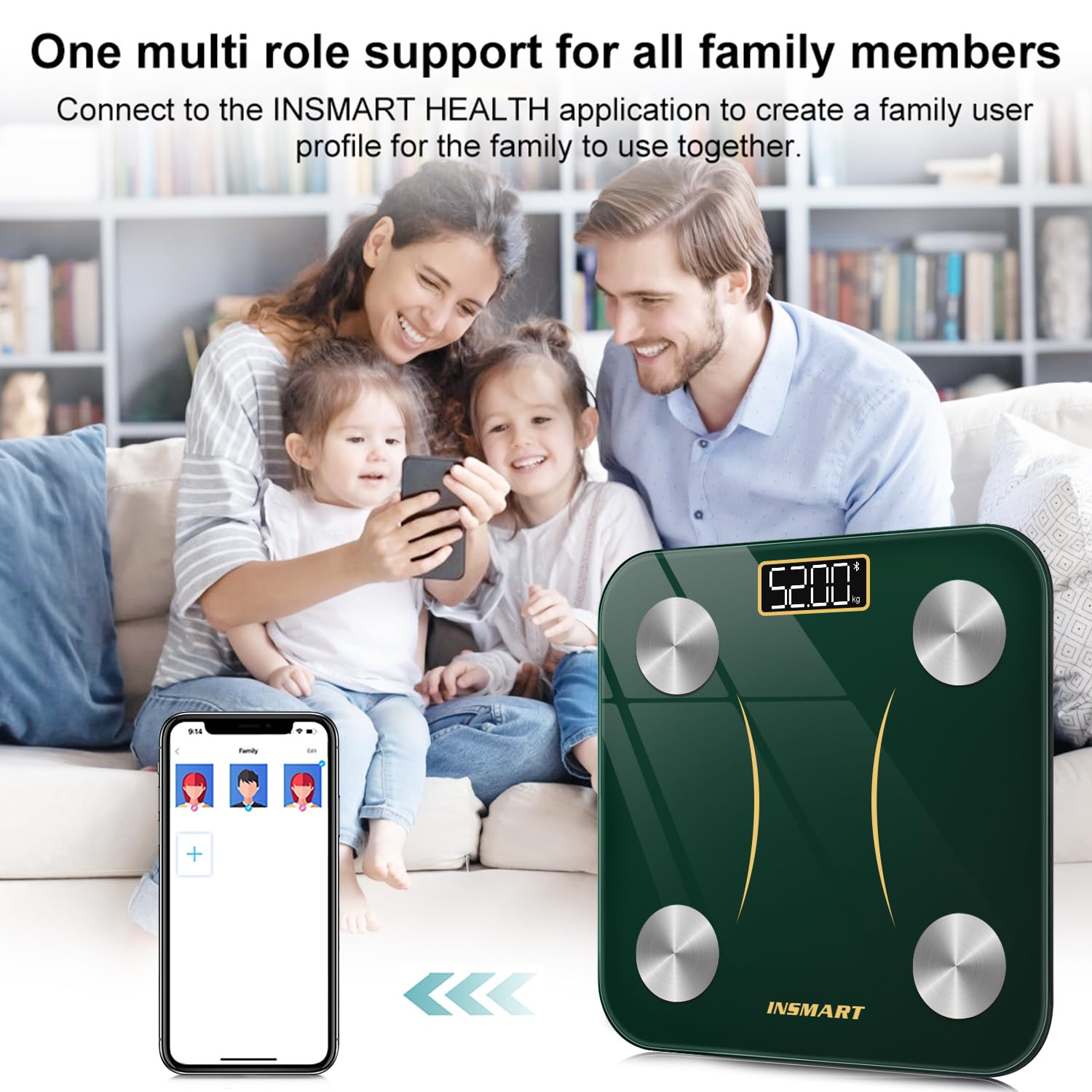 INSMART Smart Scale for Body Weight, Digital Bathroom Scale with BMI, Muscle Mass, Bluetooth Body Fat Scale,17 Body Composition Analyzer with Smart APP Sync Weight Scale, 400 lbs (Green)