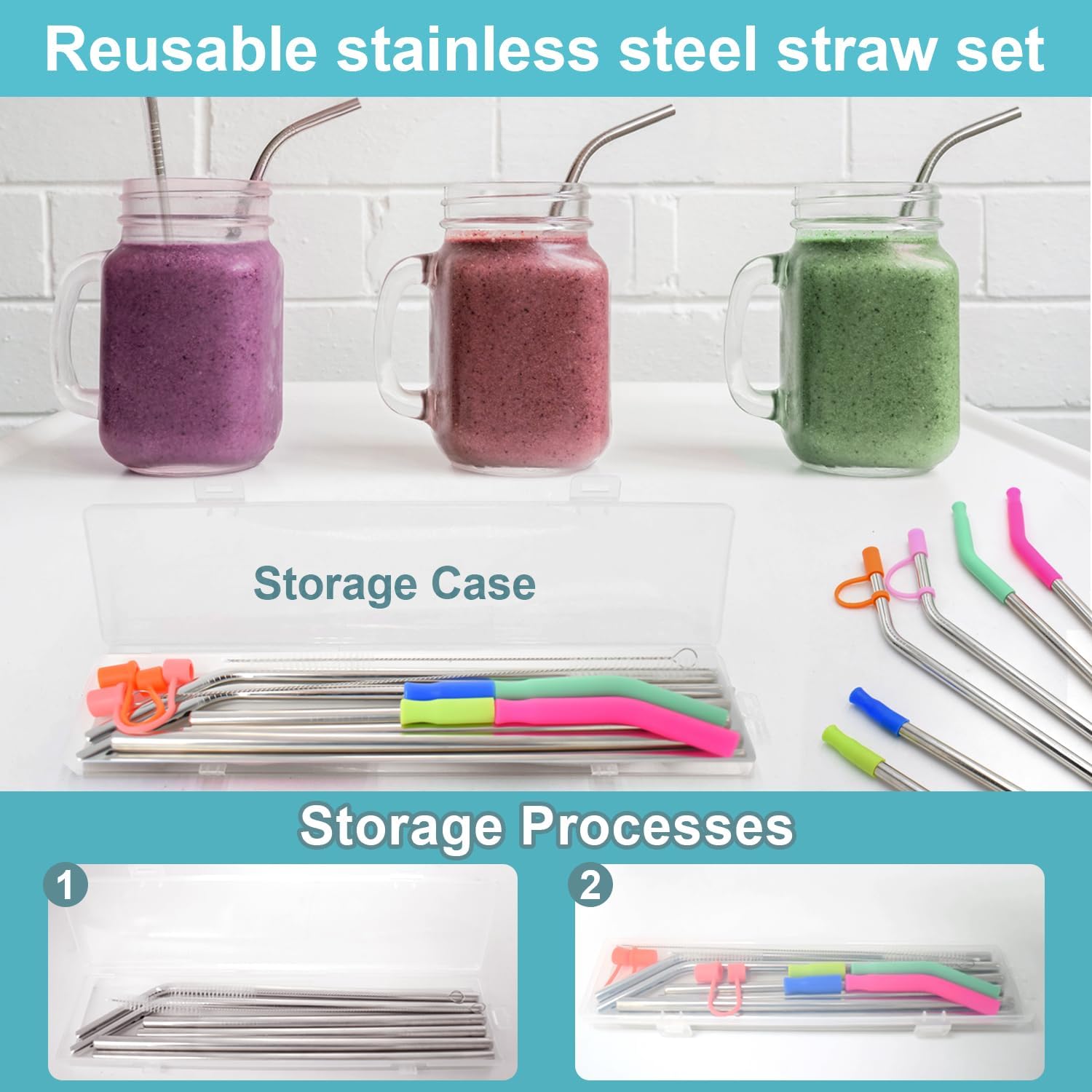 - EASY TO CLEAN AND CARRY : Comes with 2 cleaning brushes and 1 storage case, which can easily clean stubborn stains inside the reusable straws, helping you to easily clean the straws without worrying about cleaning. Easy to clean the inside of the straws, easy to store and carry without worrying about losing them