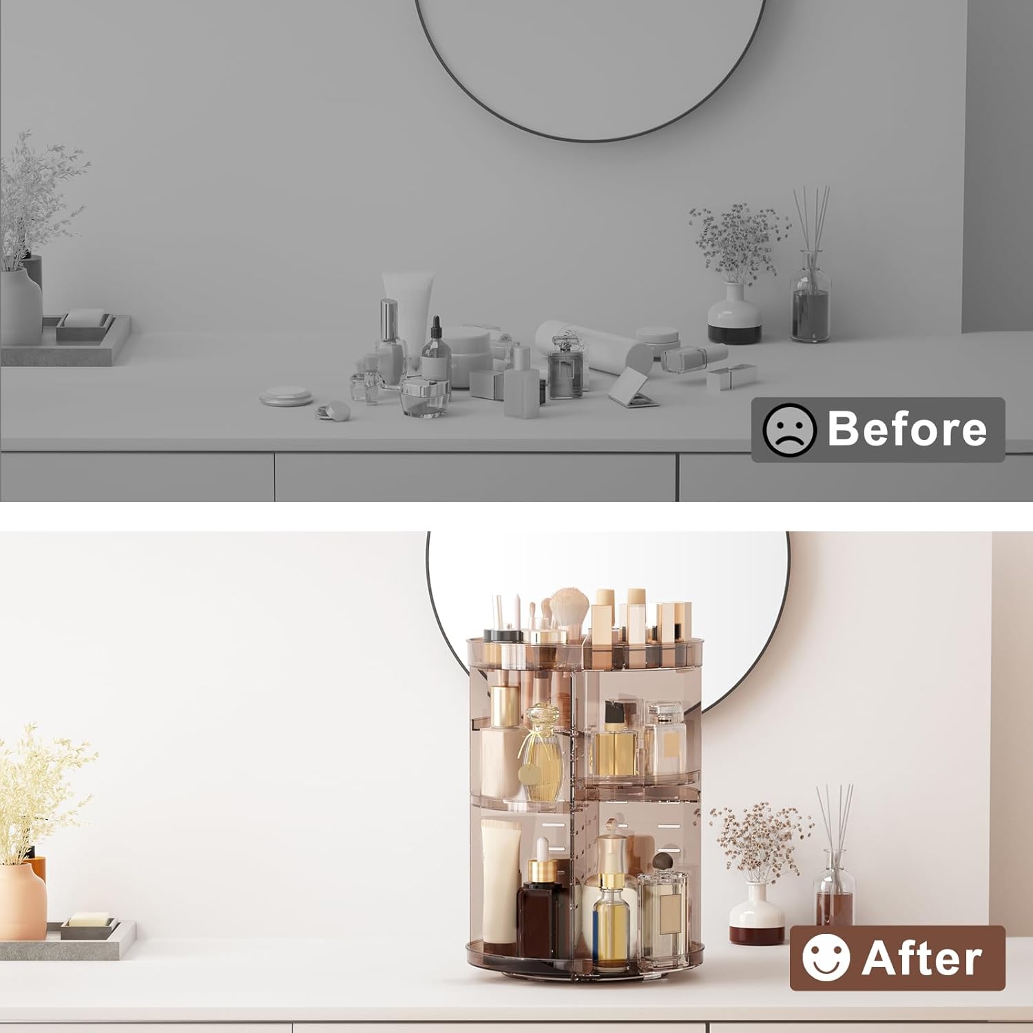 • 【Multi Function Storage】It's Exclusive brown lazy susan turnable for vanity, bathroom countertop organizer, bedroom dresser organizer, kitchen spice organizer, etc. It's also idea gift for Mother's Day, Christmas, New Year, birthday, and other holidays