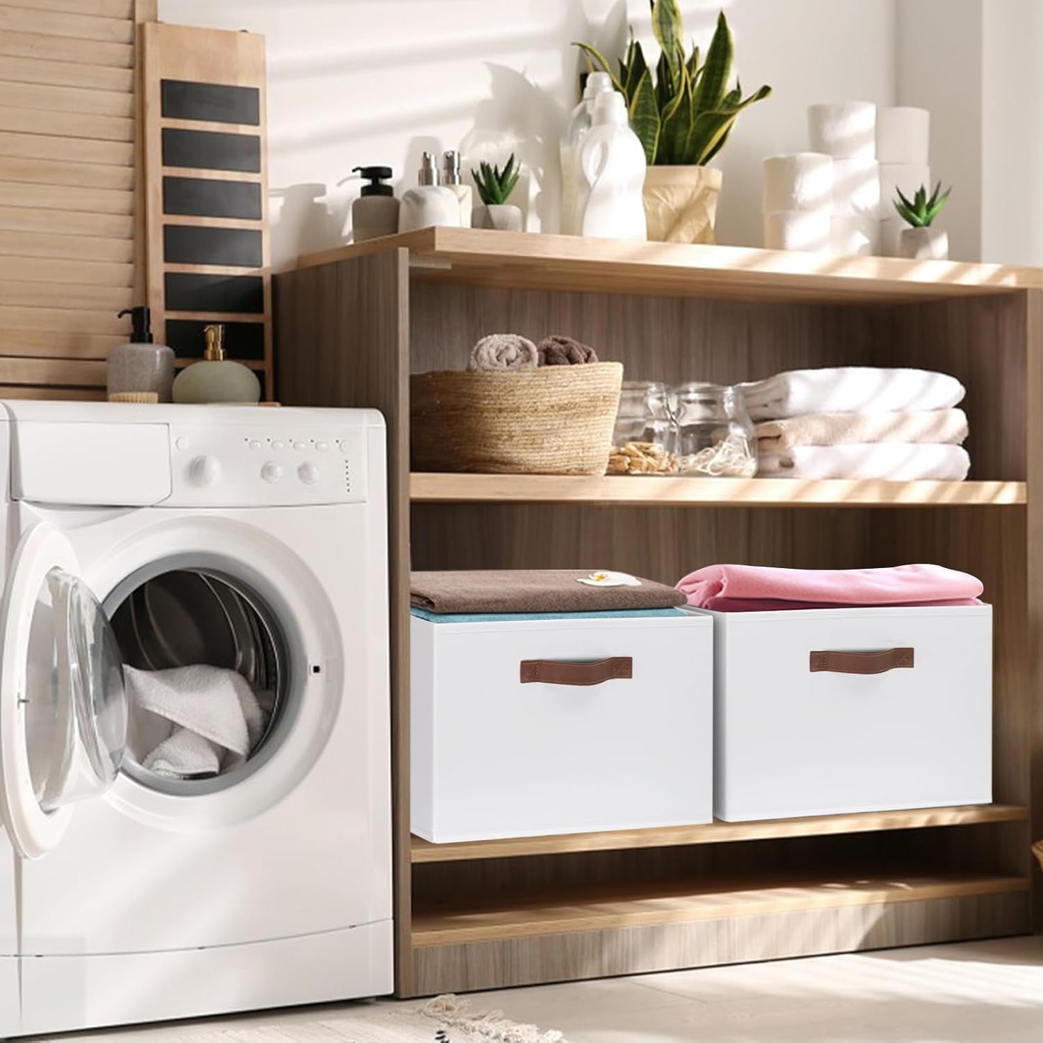 GhvyenntteS Large Fabric Storage Bins with 3 Handles, 15x11x9.6 Inch Storage Baskets for Shelves, Foldable Closet Storage Bins for Shelves, Closet Organizers and Storage Boxes, White