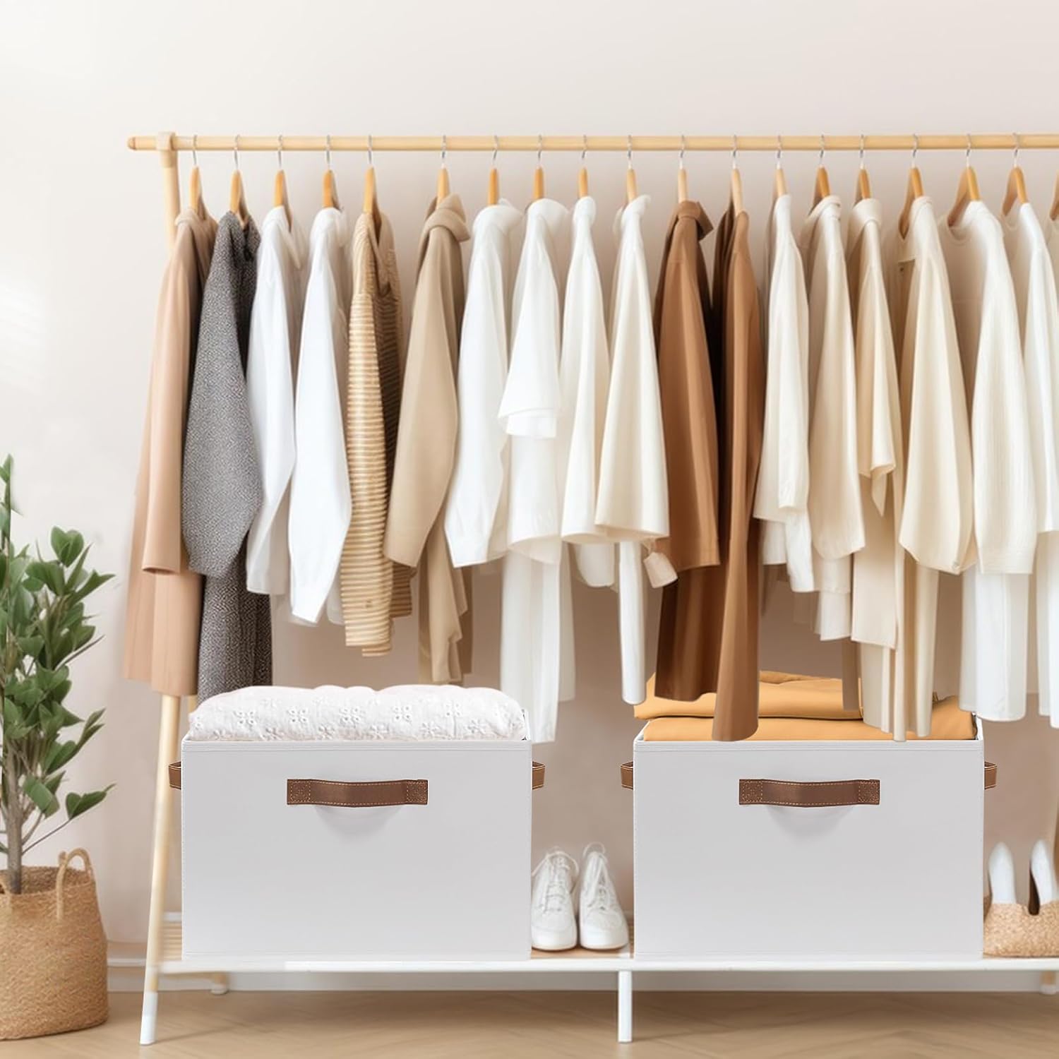 - 【LARGE CAPACITY】Our storage baskets for shelves are home essentials to save storage space and keep everything organized. Measuring 15” (L) x 11” (W) x 9.6” (H), large enough for organizing tons of clothes, shirts, sweaters, shoes, socks, underwear, towels, blanket, bed sheets, pet supplies, books, DVDs, office and craft supplies, etc