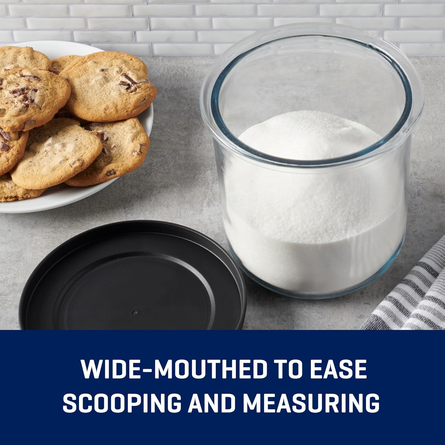 - THICK AND DURABLE: These glass jars with lids are wide-mouthed to ease scooping and measuring while protecting foods and their flavors. Jars are dishwasher safe. Lids are top-rack safe.