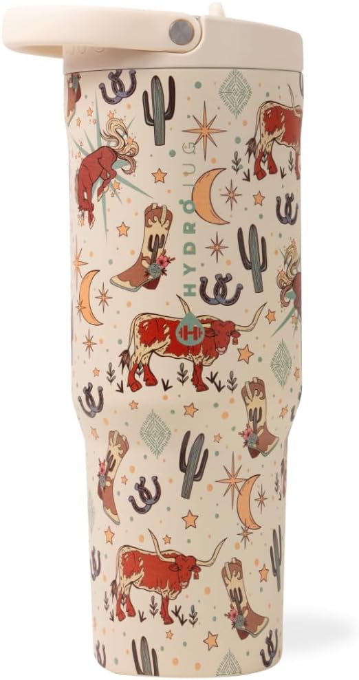 HydroJug Sport - Stainless Steel Tumbler with Straw, Vacuum Insulated, 40oz Leakproof Water Bottle, Ergonomic Design, Reusable, Dishwasher Safe, Rubber Base, Durable for Gym or Outdoors, Rodeo