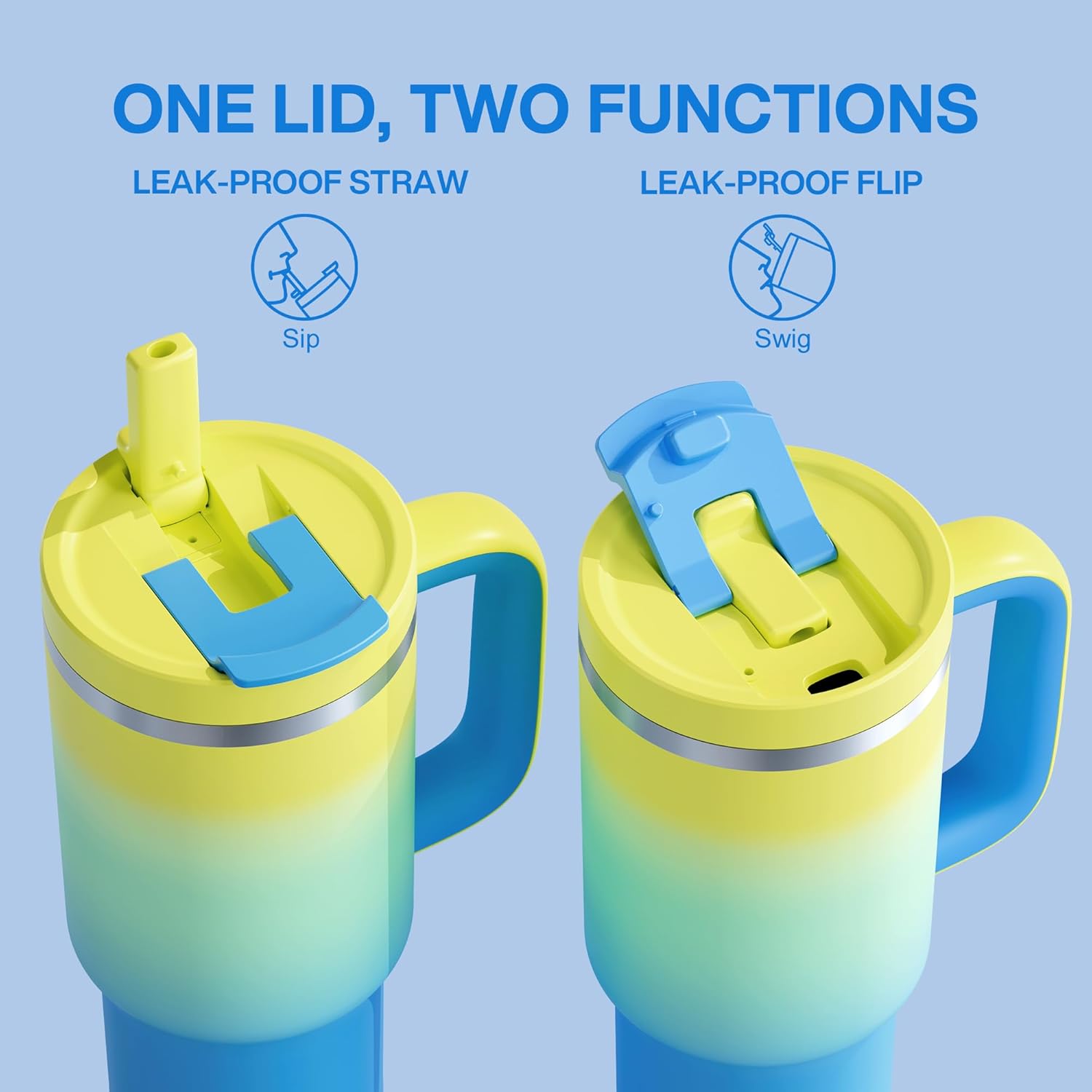 ENCOOL 40 oz Tumbler with Handle and Straw: Stainless Steel Insulated Tumbler Keeps Cold for 24 Hours, Leakproof Travel Cup Fits in Cup Holder and BPA-Free, Soft Lagoon