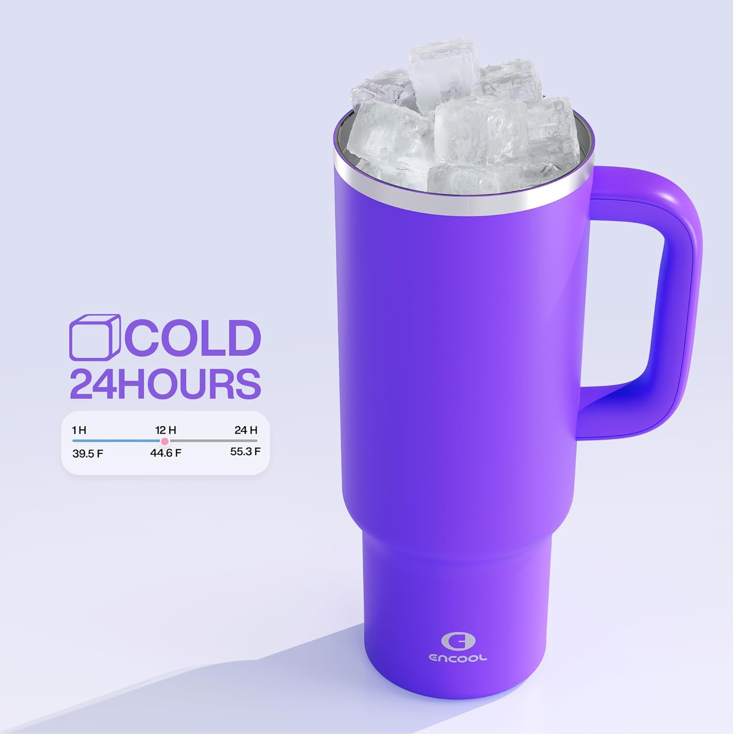 40 oz Tumbler with Handle and Straw: Stainless Steel Insulated Tumbler Keeps Cold for 24 Hours, Leakproof Travel Cup Fits in Cup Holder and BPA-Free,Violet