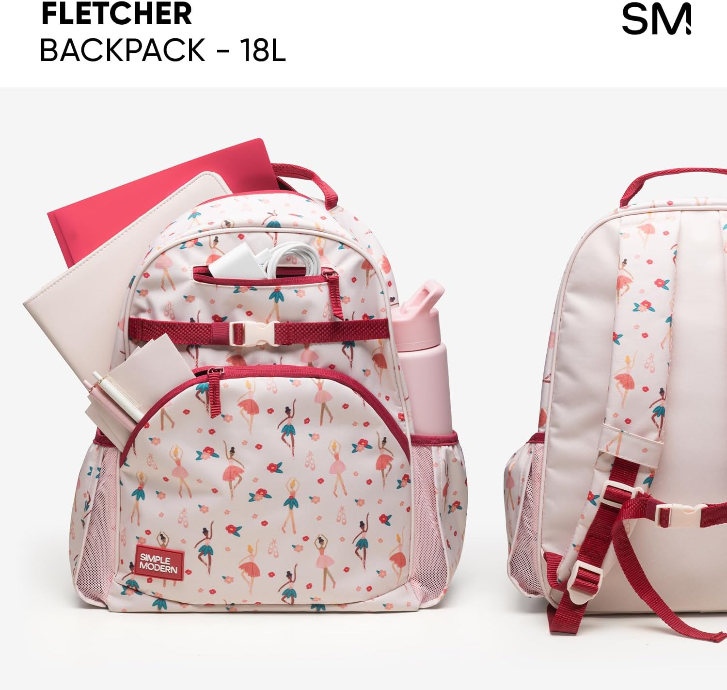 - School Ready: Features a padded tablet sleeve, a large zip-closure front pocket, a zip-closure stash pocket, and two expandable bottle sleeves on the sides