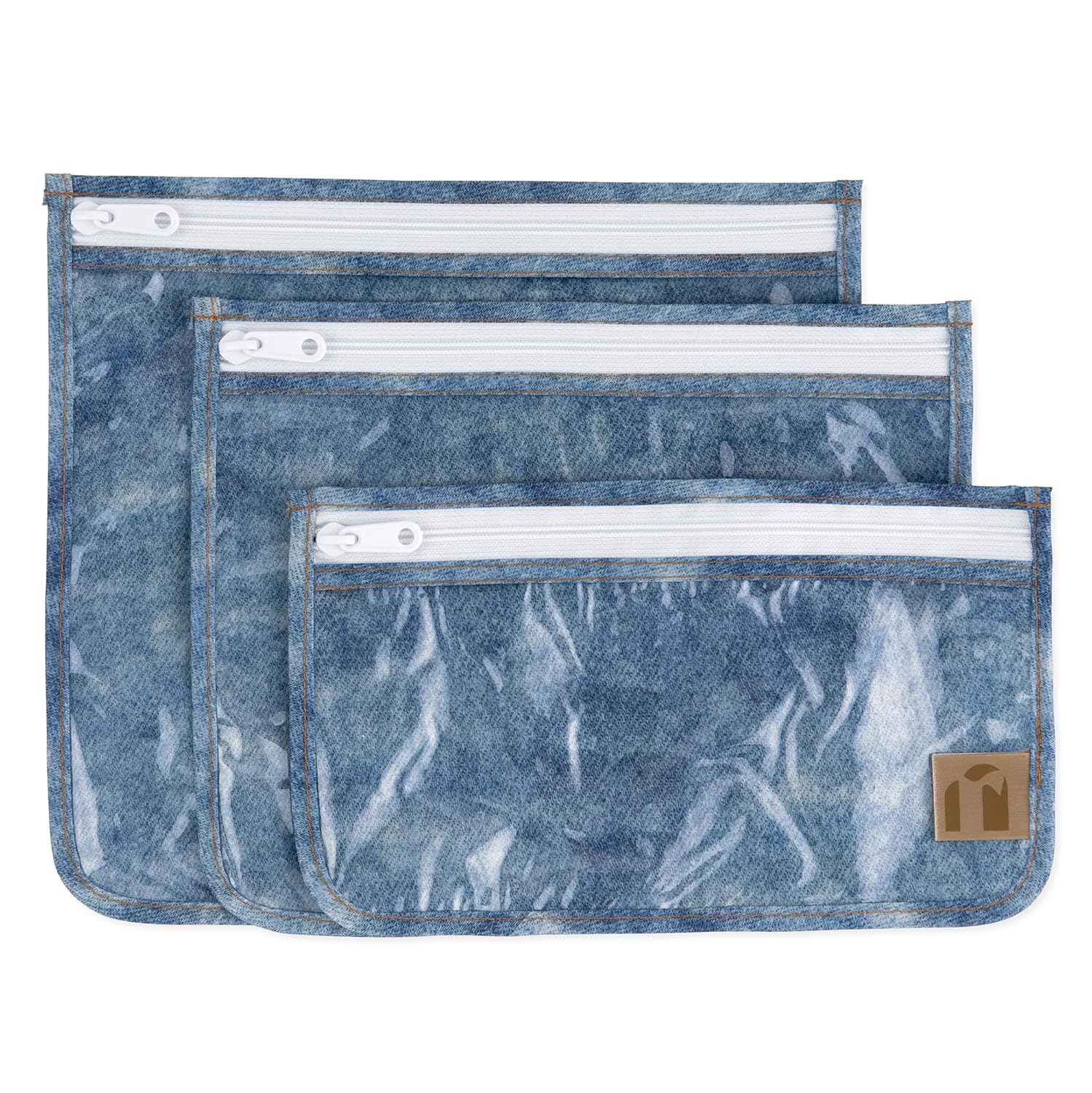 Roamio Travel Bag, Toiletry, TSA Approved Pouch, Zip Quart Size Airline Compliant, Clear-Sided, Baby, Diaper Bag Organization, Makeup, Accessories, Carry On Packing, Set of 3 Sizes, Faux Denim
