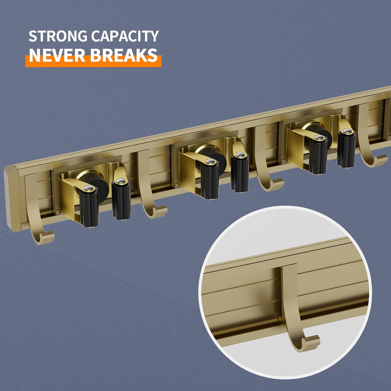 reliahom Broom Holder Wall Mount Mop and Broom Hanger Wall Mounted Garage Storage Rack Kitchen Garden Tool Organizer (4 Racks with 5 Hooks, Bronze)