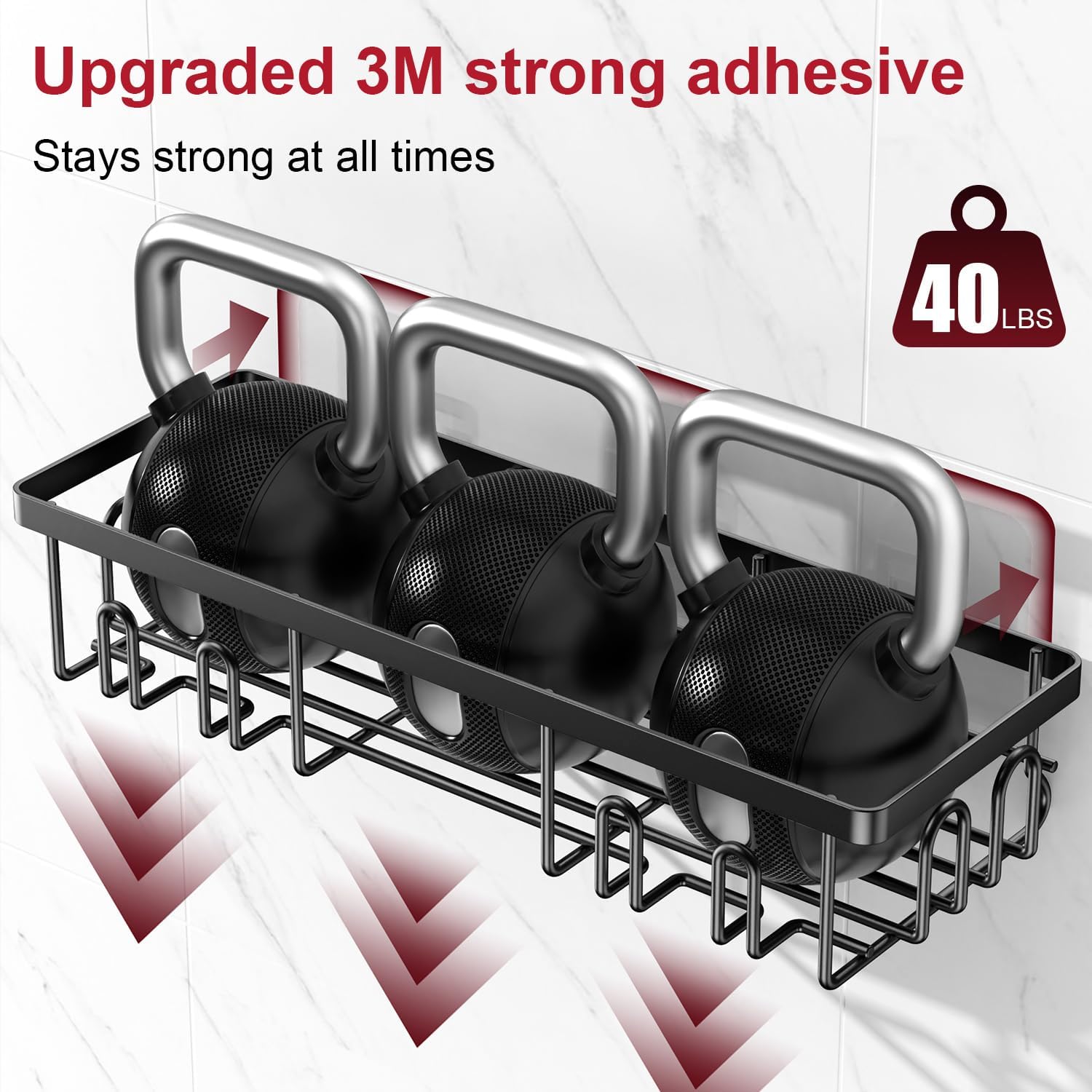 • 【Maintain Balance and Absolute Stability】- The newly upgraded 3M Clear No-Scratch Adhesive is ultra-reliable and can hold up to 40 pounds. Which is equal to 16 bottles of 35oz shampoo/ shower gel/ body lotion weight. Keep the tins and bottles in the bathroom shelf organizers, and make them easy to fetch and use. Never worry about falling issues after proper installation