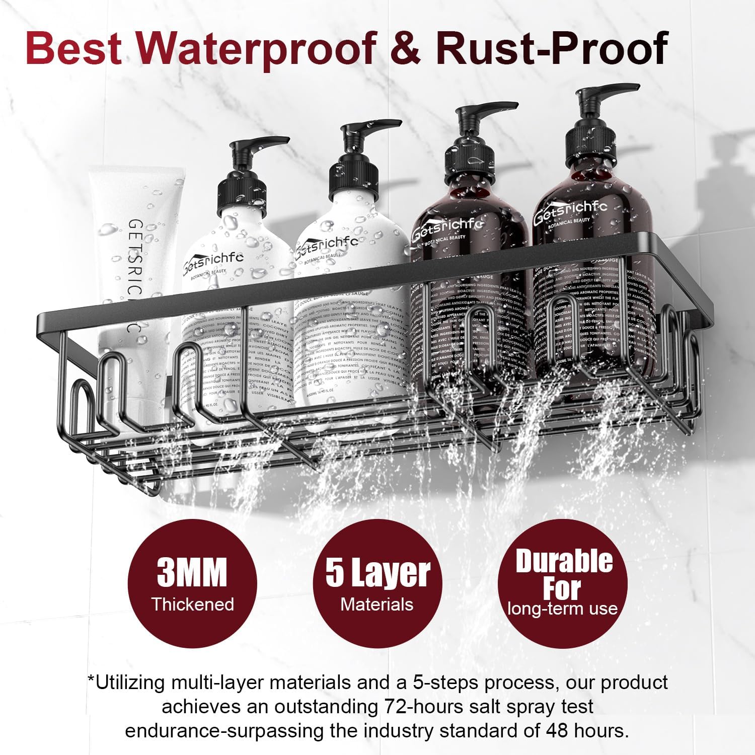 • 【Package Contents & 7/24 After Service】- 2 Excellent shower caddies and individually each shelf comes with integrated 8 hooks, 2 x 3M strong adhesive and 1 x user manual. If you need it, we will help you solve the problem within 24 hours and fully resolve it within 7 days. This is what Getsrichfc should do