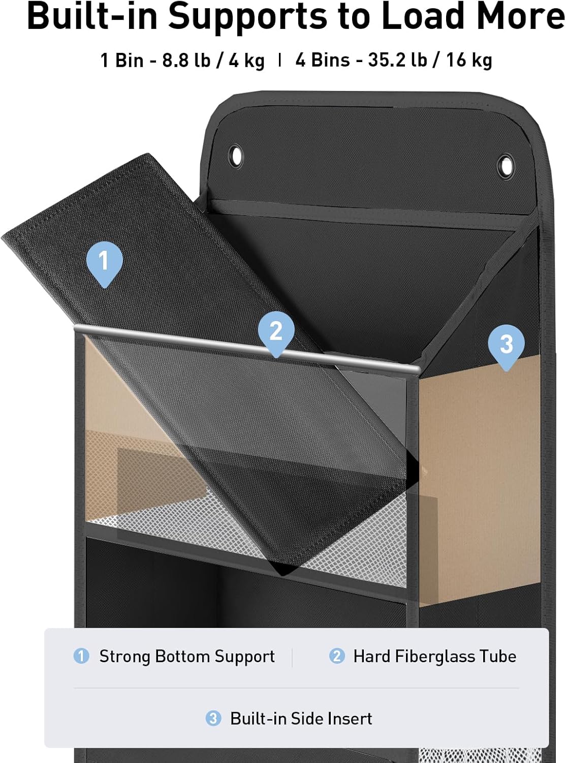 - Swing-proof & 35.2 LB Load Capacity: Yecaye behind the door storage stands out for its innovative design and durability. The organization and storage shelves features strong stitching to connect the pockets, built-in side cardboards, reinforced bottom inserts, and fiberglass tubes to prevent sagging and leaning. These features ensure that the newborn essentials must haves can keep in shape and can hold up to 35.2 lbs with ease