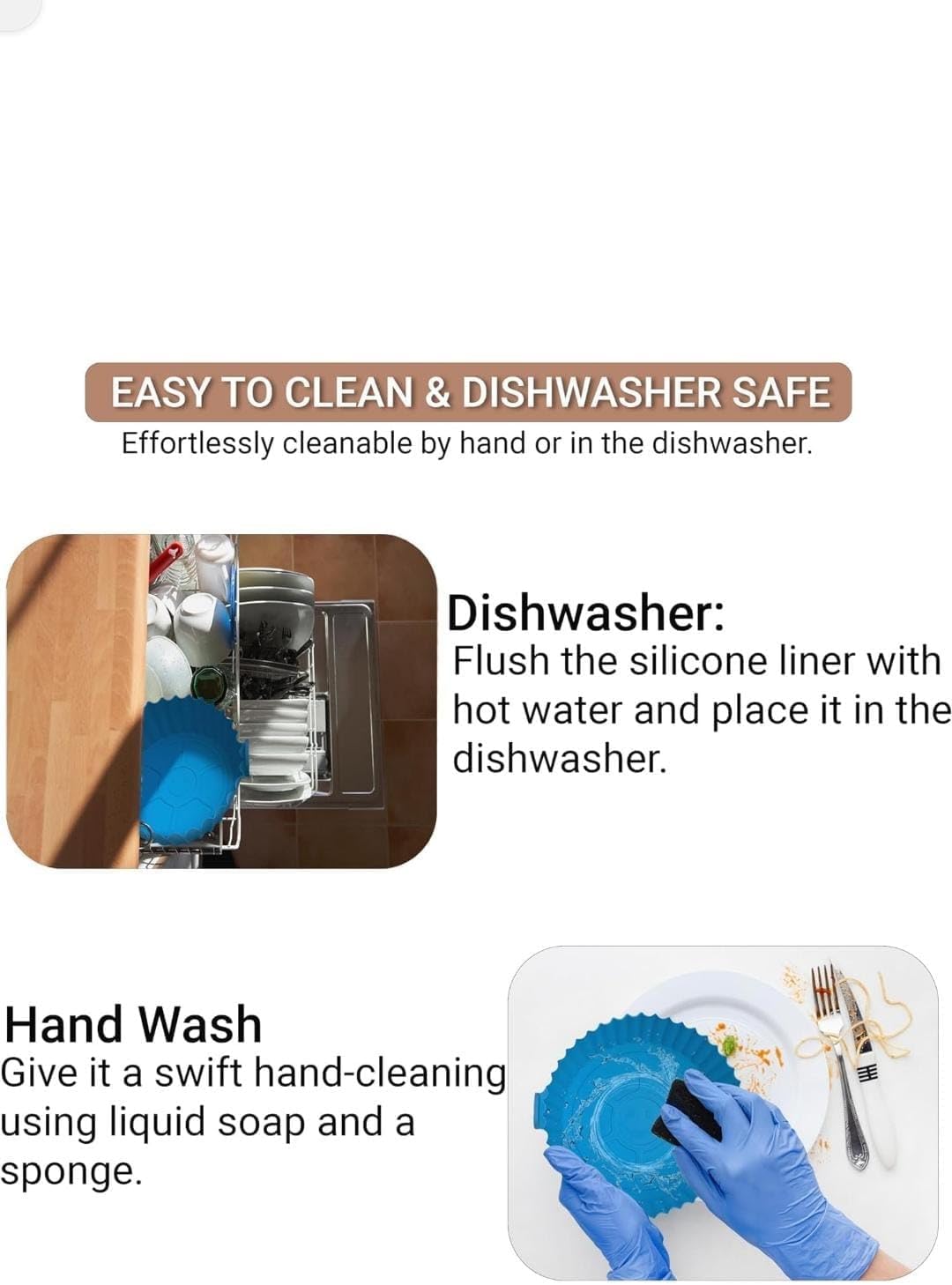 - DURABLE AND REUSABLE: Made of food-grade silicone, these non-stick liners are heat resistant up to 260°C and can be used repeatedly without wear and tear.