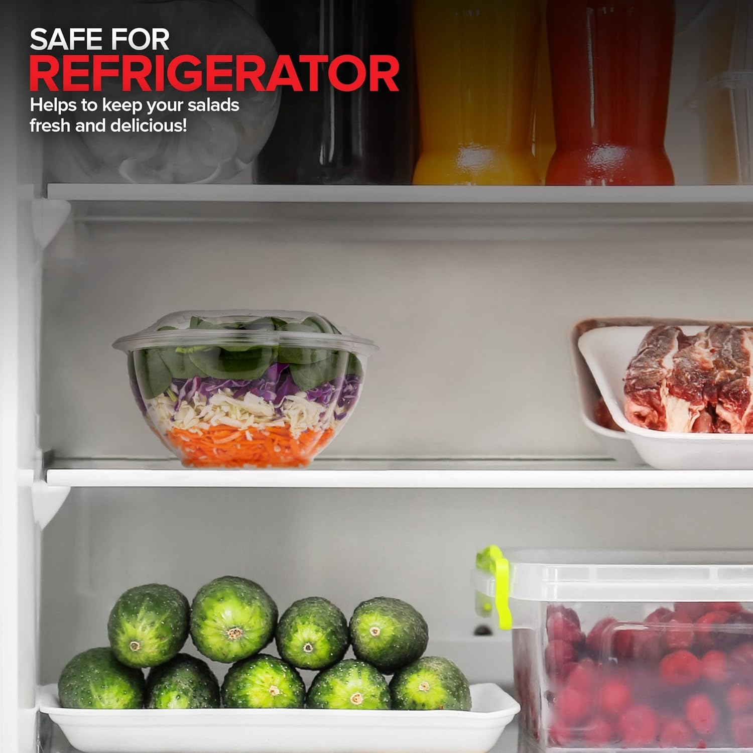 • Disposable: Made of durable plastic, our extra large salad bowls with lids are BPA-free, food safe, and recyclable. When you're done, simply toss them in the trash for easy clean-up.
