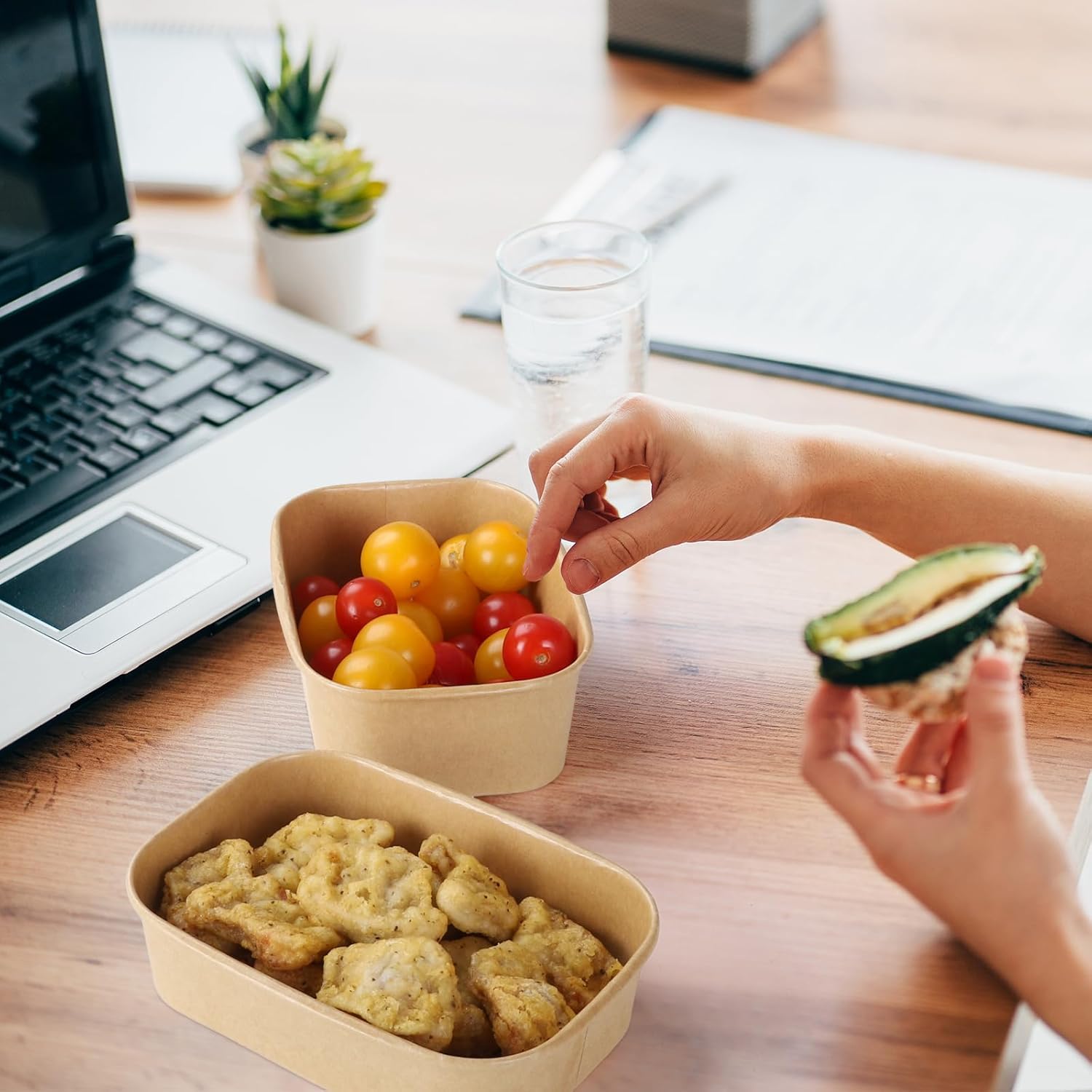 - Package Contains: 50 count 17oz Rectangle kraft paper bowls with 50 count clear lids.