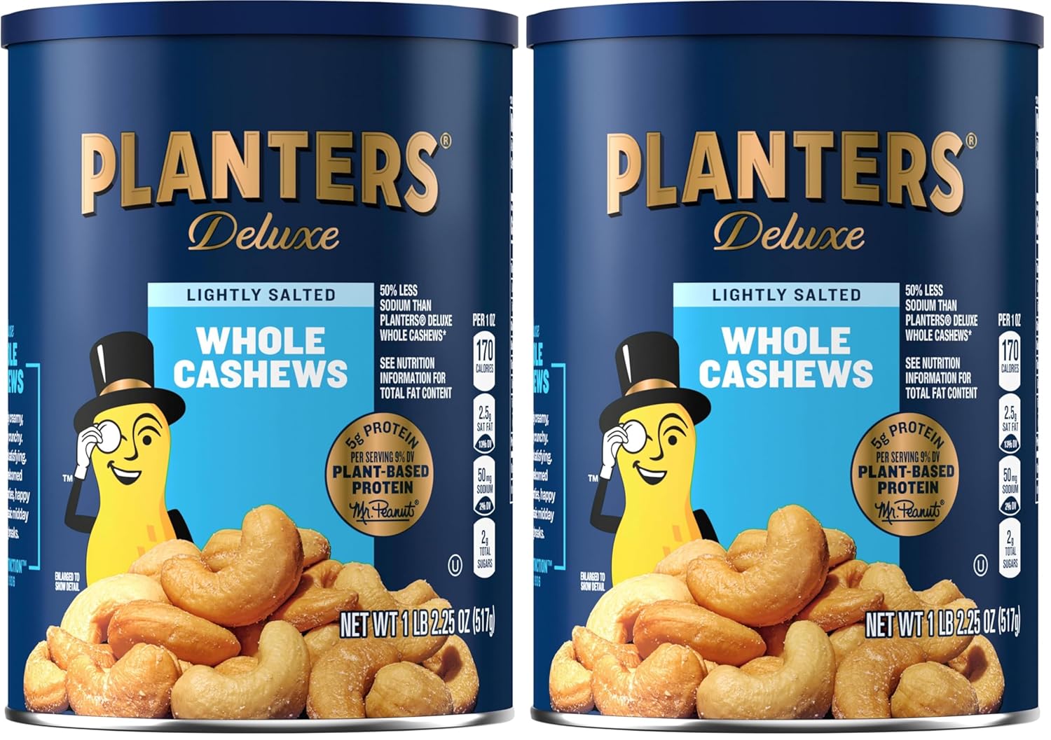 PLANTERS Deluxe Lightly Salted Cashews, Party Snacks, Plant-Based Protein, Quick Snack for Adults, After School Snack, Flavored with Sea Salt, Kosher, 1lb 2.25oz (Pack of 2)