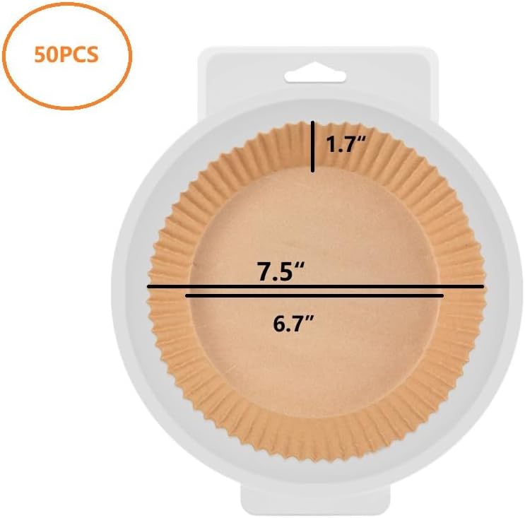 - Multiple Sizes and Shapes, Suitable for Various Air Fryers:Available in 7.5-inch round, 9-inch round, 10-inch round, and corresponding 50pcs/100pcs packaging options. It perfectly fits most round air fryers on the market (including 3-5QT small air fryers, 6-8QT medium air fryers). It is also compatible with various cooking equipment such as microwaves and ovens, meeting the diverse needs of daily family baking, roasting meat, and reheating leftovers